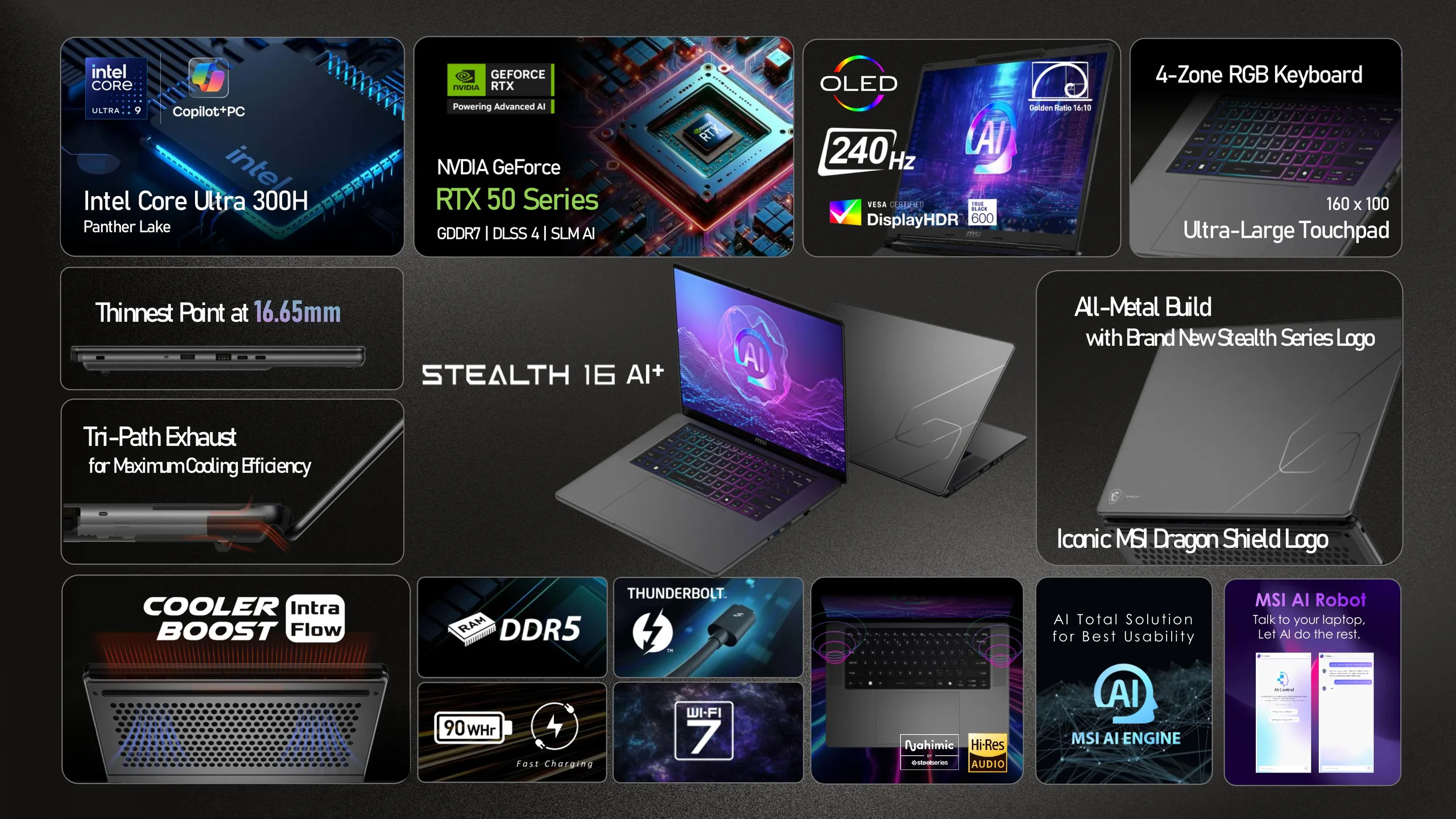 Al CES 2026, MSI abbandonerà lo Stealth 18 in favore di un nuovo Stealth 16 AI+ alimentato dai più recenti processori Intel Panther Lake-H Series 300 e dalle GPU RTX 50.