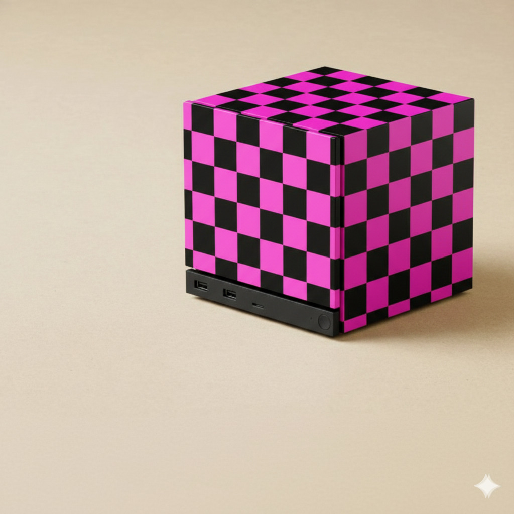 Un rivestimento in pixel-art di Minecraft trasforma il cubo in un singolo blocco del mondo del gioco. È sia bello che pratico: la texture a bassa risoluzione si legge bene su una superficie piana e mantiene il cubo leggibile a distanza. Questo concetto suggerisce che i franchising con un forte linguaggio di design potrebbero effettivamente fornire skin ufficiali che la gente acquisterebbe, e non solo creare per divertimento. Questa sembra una vittoria facile per un produttore di skin di terze parti.