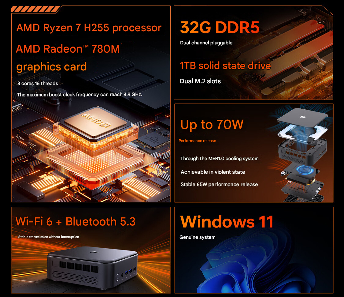 Per la connettività wireless, il mini PC dispone di WiFi 6 e Bluetooth 5.3. Altri aspetti degni di nota sono due slot per RAM DDR5 SO-DIMM, due slot PCIe M.2 per le unità di archiviazione (2 TB Samsung 990 Pro SSD al prezzo attuale di 182,31 dollari su Amazon) e un elegante chassis da 0,74 litri. La variante Ryzen 7 H 255 di Machenike GTR costa CNY 3.999 in Cina, circa 563 dollari. Il produttore non ha ancora parlato di un lancio globale, ma Machenike non è nota per offrire tutti i suoi prodotti sul mercato internazionale.