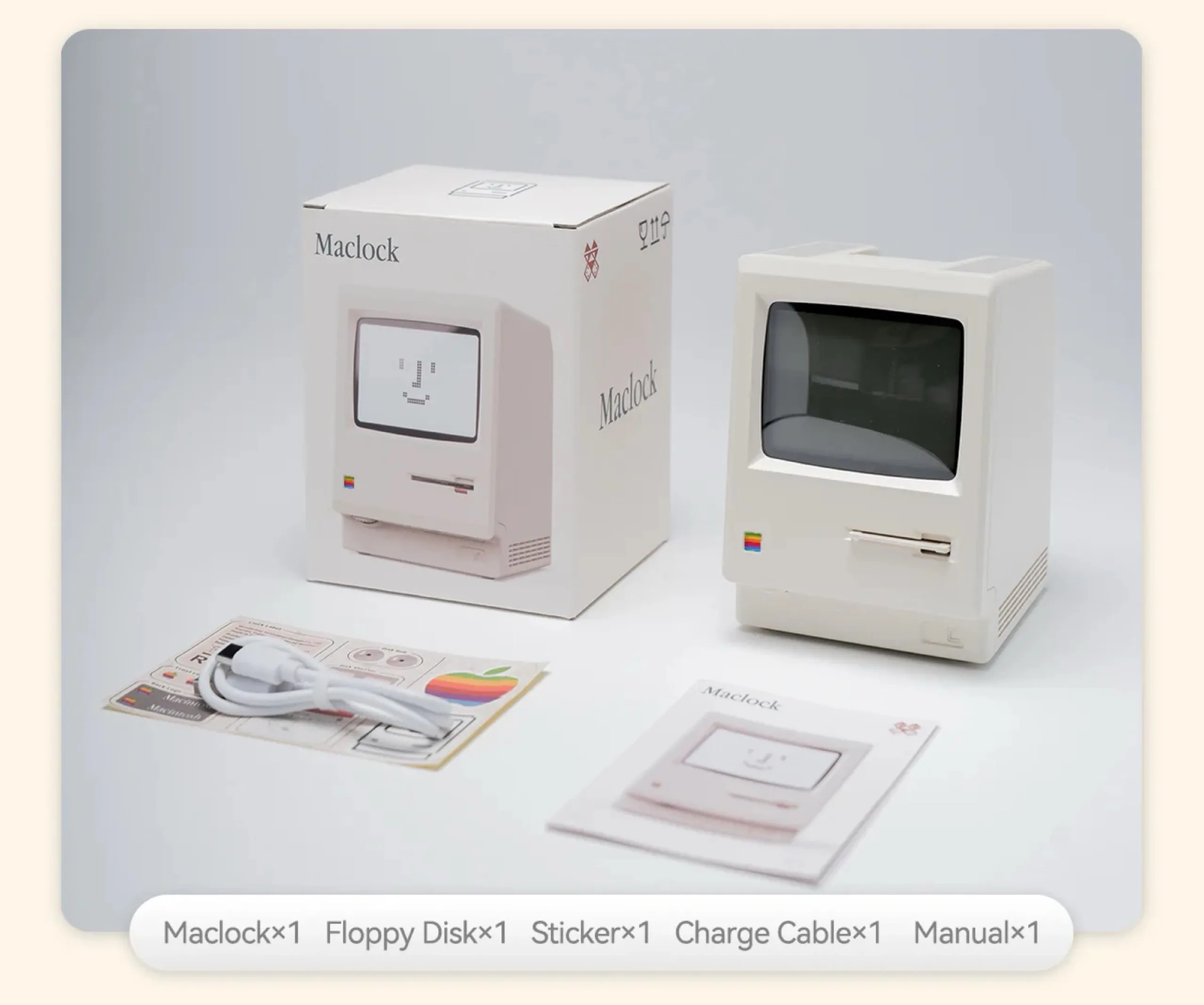 Il display mostra l'ora e la data per impostazione predefinita, ma Maclock può essere utilizzato anche come sveglia. La cassa dell'orologio digitale misura 8 x 9,1 x 11,2 centimetri. Gli adesivi sul retro della cassa devono essere applicati dall'acquirente. Kokogol Maclock viene prodotto in quantità limitate; una volta esaurito, non sarà più disponibile.