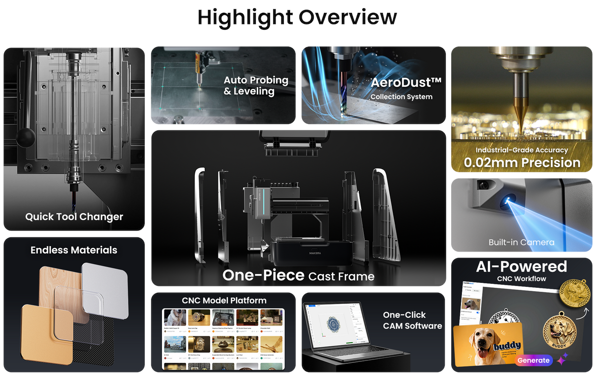 La Z1 sarà disponibile anche con un kit opzionale per il quarto asse e un modulo da 5 W, entrambi gli stessi sistemi utilizzati nella Carvera Air e nella Carvera CNC full-fat, consentendo ai potenziali produttori di investire in aggiornamenti per le loro macchine che ne amplieranno le capacità. Allo stesso modo, la Z1 è compatibile con il software CAM interno aggiornato di Makera, che a quanto pare diventerà Makera Studio, e la macchina può essere controllata tramite l'App Makera (ex Makera Controller) in esecuzione su Windows, Linux, macOS, iOS o Android.