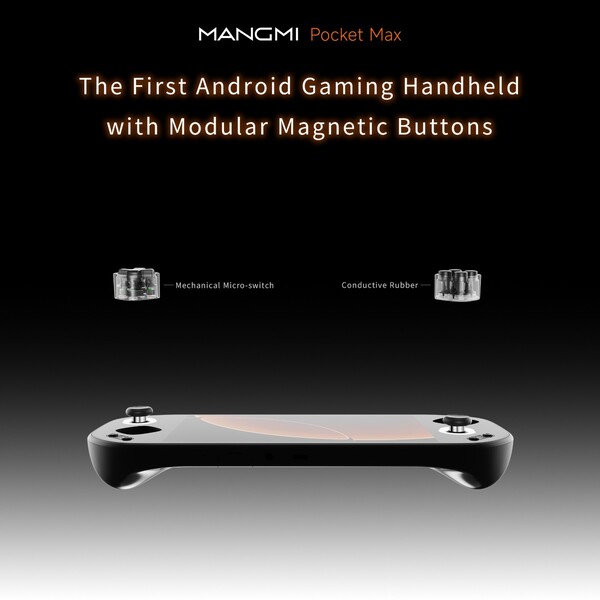 Pubblicando sui suoi canali di social media, Mangmi ha rivelato che il Pocket Max sarà dotato di pulsanti magnetici modulari. Nell'immagine allegata, il Mangmi Pocket Max viene mostrato con il D-Pad e i pulsanti ABXY rimossi. Questo design consentirà agli utenti di scambiare entrambi i controlli con un tipo diverso, ad esempio un layout diverso per i pulsanti ABXY o un touchpad al posto del D-Pad.