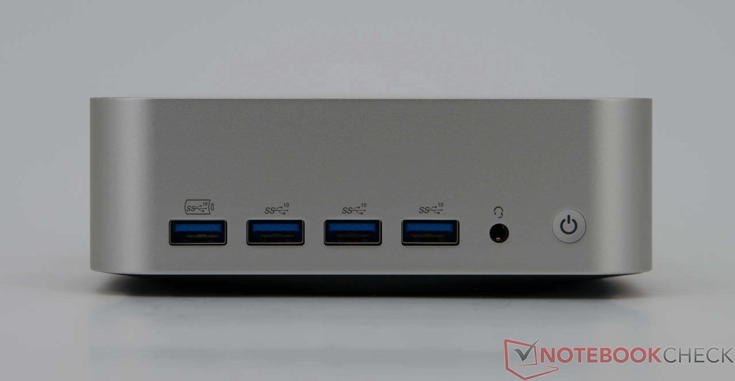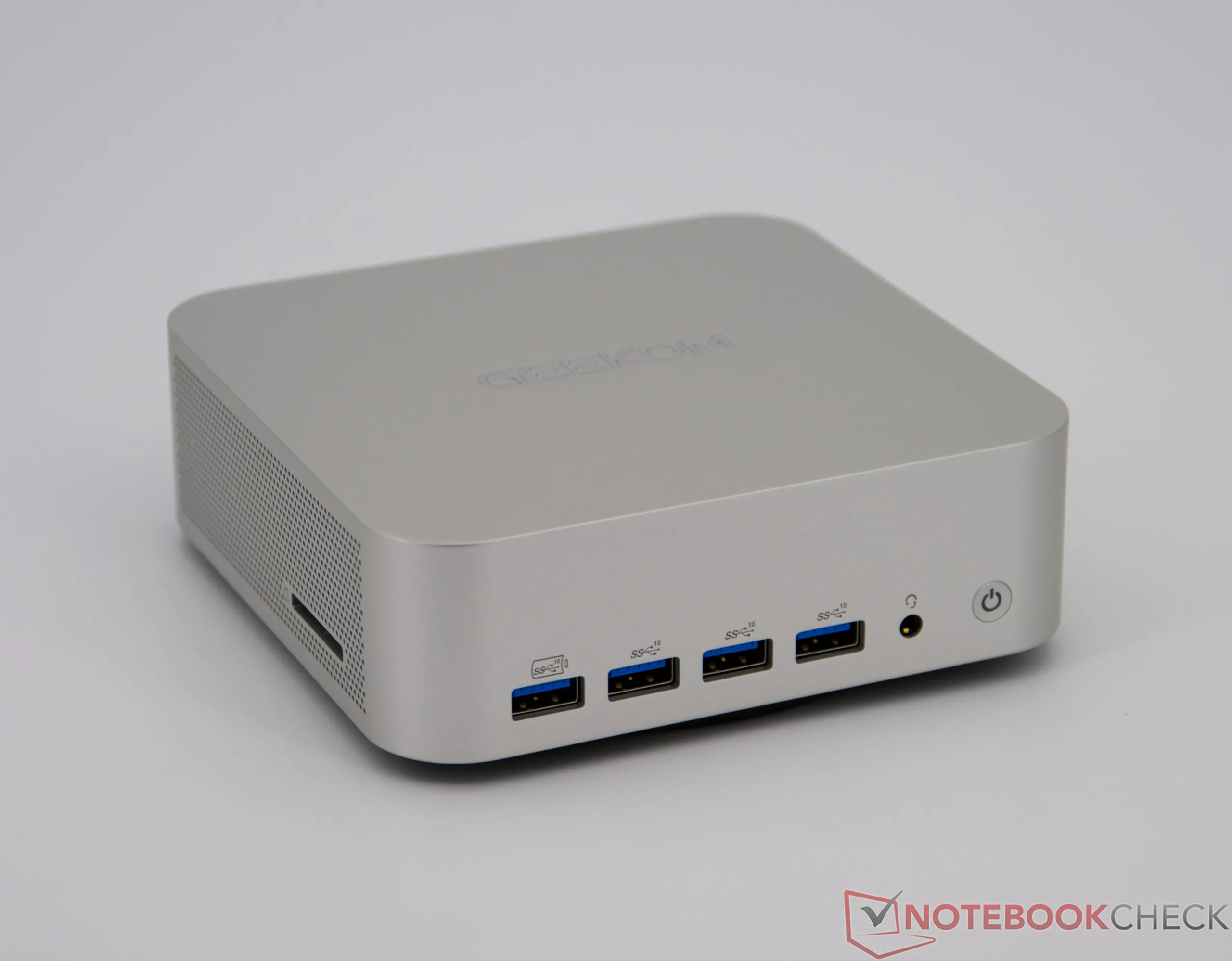 Esternamente, Geekom rimane fedele al suo familiare linguaggio di design. L'alloggiamento in alluminio di alta qualità è compatto, ma offre comunque spazio sufficiente per un'ampia connettività. Oltre a diverse porte USB, sono disponibili moderne interfacce USB4, uscite HDMI e un lettore di schede, che consentono di integrare il mini PC in modo flessibile nelle configurazioni esistenti.
