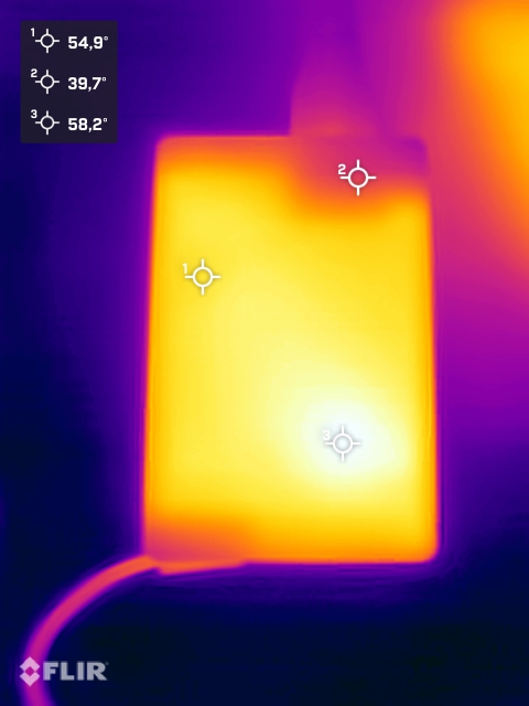 (+) Il lato inferiore si riscalda fino ad un massimo di 34.6 °C / 94 F, rispetto alla media di 36.5 °C / 98 F