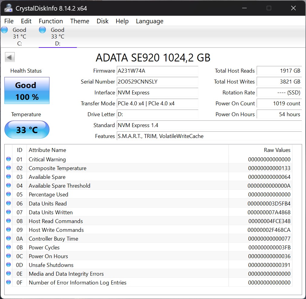 Prestazioni USB4 (ADATA SE920)