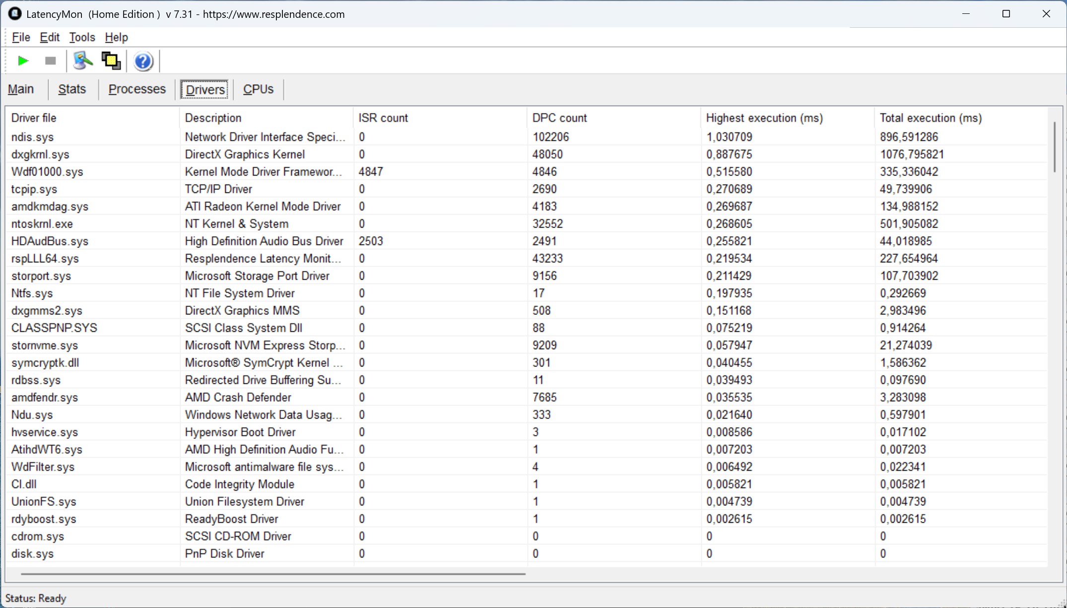 | DPC Latencies / LatencyMon - interrupt to process latency (max), Web, Youtube, Prime95 | |