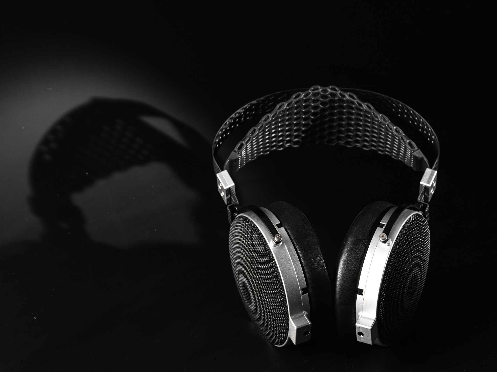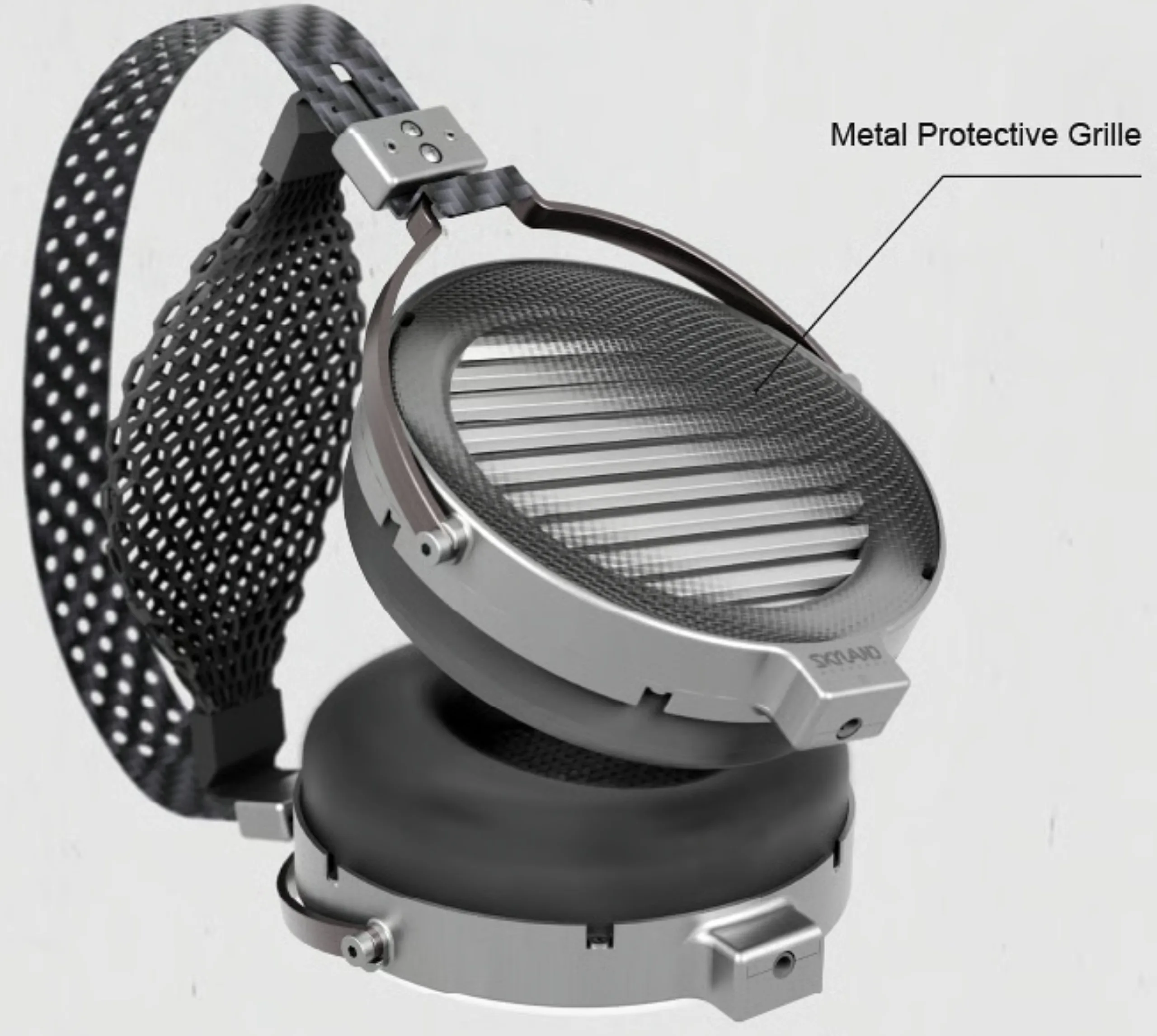 I driver sono inseriti all'interno di padiglioni auricolari in alluminio lavorato a CNC, dotati di morbidi cuscinetti auricolari in pelle di agnello e fissati a un archetto in fibra di carbonio resistente e flessibile, con un cuscinetto fluttuante morbido stampato in 3D sotto l'archetto.