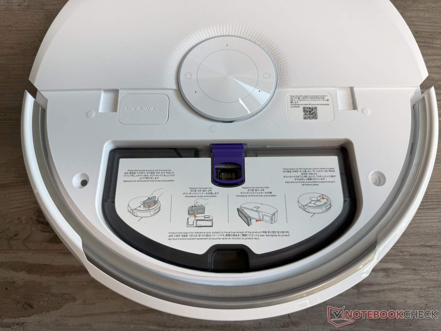 La stazione di pulizia inclusa non ha più un display integrato, come avveniva in precedenza con i modelli Narwal Freo. Tuttavia, è presente un pulsante integrato per avviare direttamente il robot. Oltre all'estrazione della polvere per un massimo di 120 giorni (secondo il produttore), la stazione offre la pulizia con panni ad acqua calda con acqua temperata a 60°C, con adattamento all'intelligenza artificiale. Segue l'asciugatura ad aria calda a 45°C. La stazione dispone anche di una funzione di autopulizia ad acqua calda e di un filtro di pulizia sostituibile. Il detergente può essere versato direttamente nel serbatoio dell'acqua, il che è un po' meno comodo.