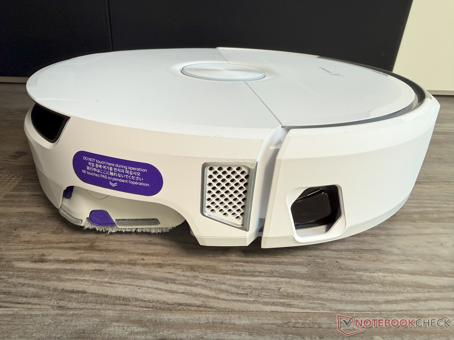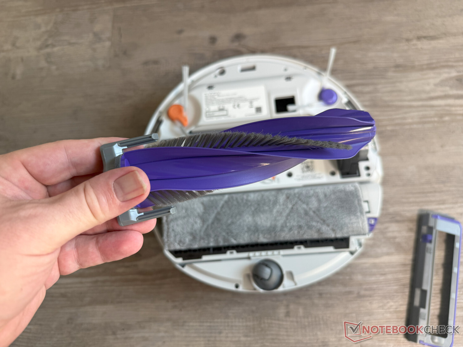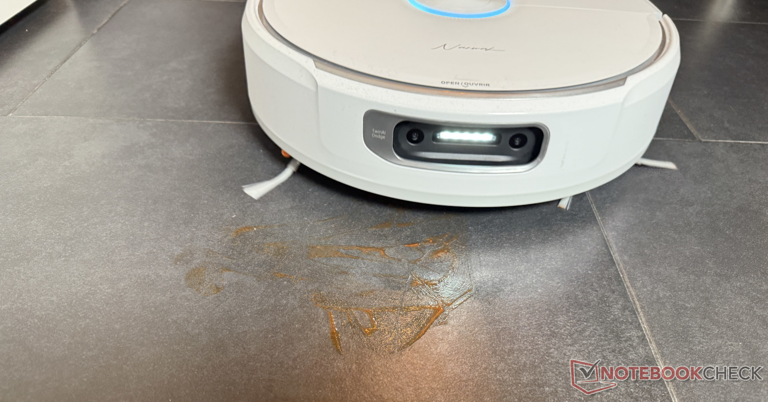 Siamo rimasti meno soddisfatti del fatto che le spazzole laterali ruotino ancora nella modalità di pulizia pura. Inoltre, le spazzole non possono essere sollevate, il che sarebbe particolarmente utile nel caso del rilevamento dei liquidi AI, che ha funzionato bene nel test. In questo modo, le macchie umide o appiccicose si diffondono inutilmente nell'ambiente circostante e sull'apparecchio. Purtroppo, abbiamo anche notato che il rullo, che può essere esteso per una pulizia quasi senza confini, a volte raschia lungo porte, mobili e simili.