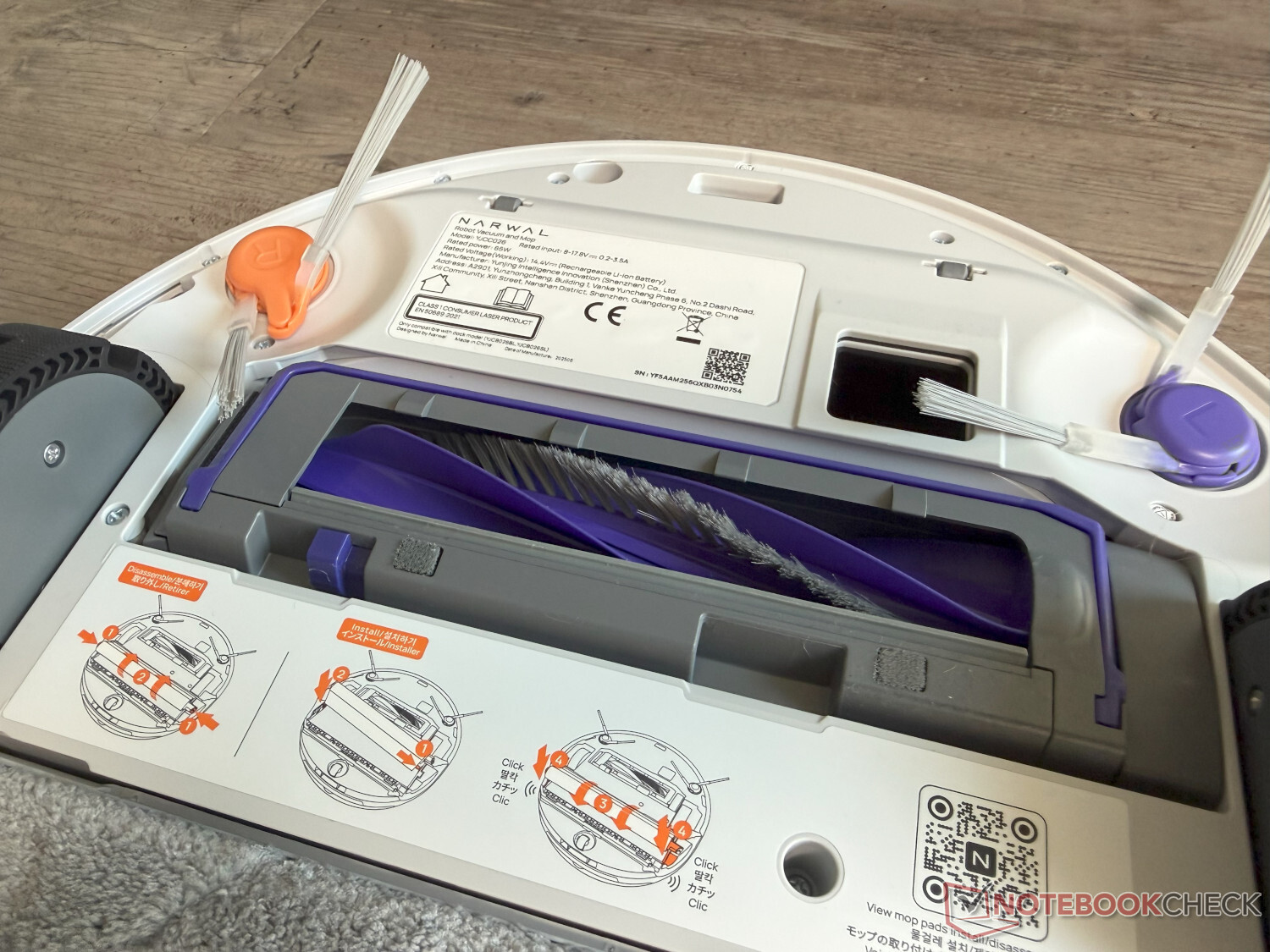 Il Narwal Flow è dotato anche di due spazzole laterali. Sebbene queste non siano estensibili, il loro design speciale dovrebbe comunque raggiungere gli angoli. Ci sono anche tutti i tipi di funzioni AI per l'adattamento intelligente della pulizia.