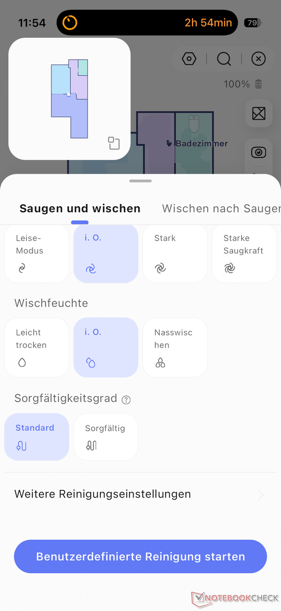Nel complesso, l'app Narwal non ci piace tanto quanto quella di altri produttori. Tra gli aspetti negativi, abbiamo notato che a volte l'app impiega qualche istante per caricarsi. Il lato positivo è che la localizzazione è stata notevolmente migliorata, mentre nei modelli precedenti era talvolta orribile quando si impostava la lingua tedesca. Tuttavia, non è ancora perfetta. Manca anche il supporto per la materia, ma verrà aggiunto in seguito.