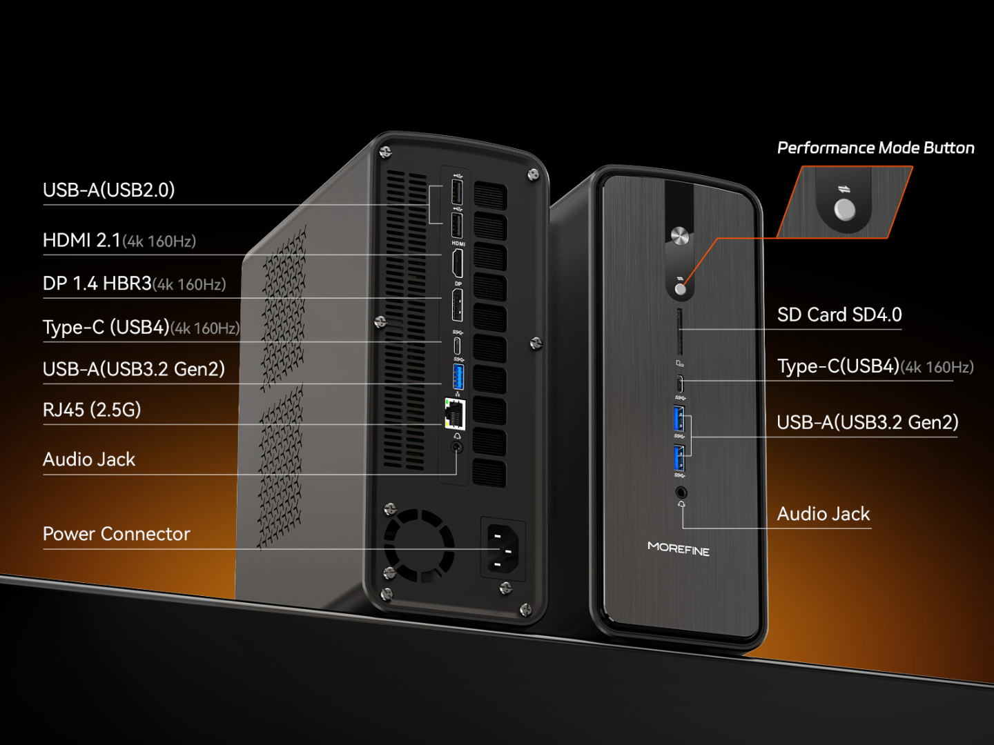 Come abbiamo notato il mese scorso, Morefine offre il modello Ryzen AI Max+ PRO 395 esclusivamente con 128 GB di RAM, a differenza delle alternative vendute da Bosgame, HP, GMKtec e Minisforum, tra gli altri. Inoltre, l'H1 contiene connettività Bluetooth 5.4 e WiFi 7 abbinata a doppi slot M.2 2280 per un massimo di 8 TB di spazio di archiviazione.