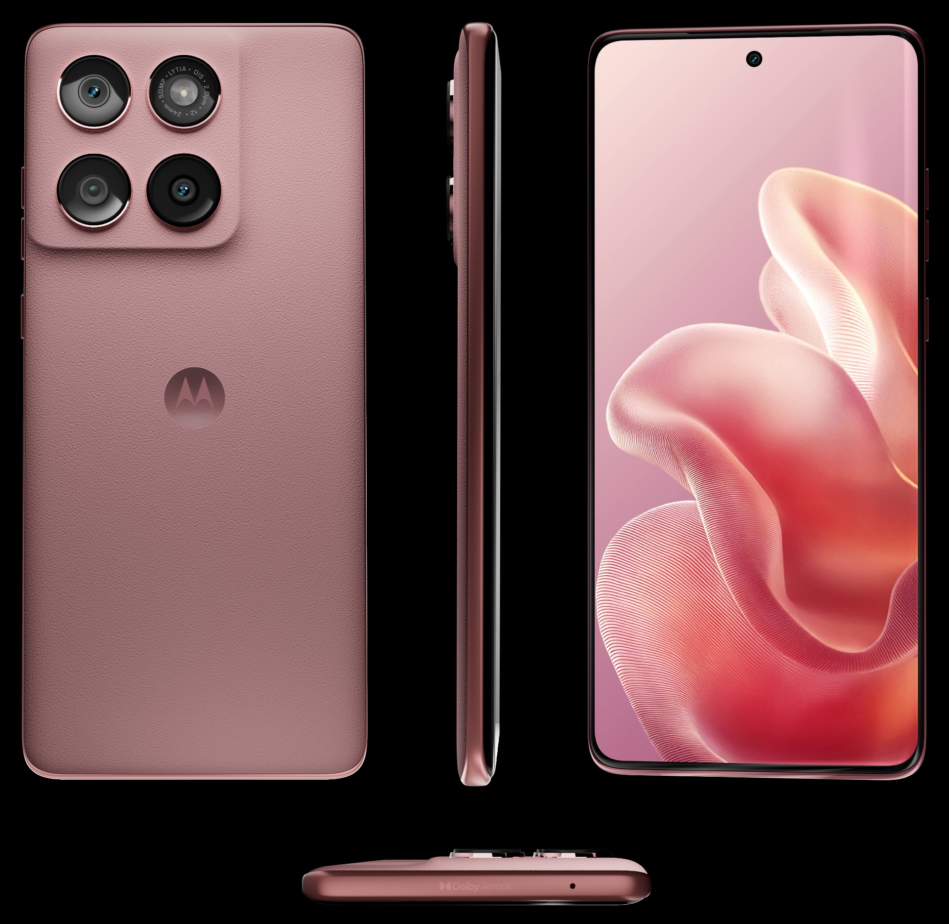 Quello che sappiamo è che il Motorola Edge 60 Fusion sarà disponibile in almeno tre colori con finiture diverse. Rose Blush e Michigan Blue (nomi non ufficiali) hanno una finitura in pelle vegana, mentre la variante Peacock Blue ha una finitura simile al tessuto. Tutti e tre hanno il noto logo Motorola Batwing sul retro.