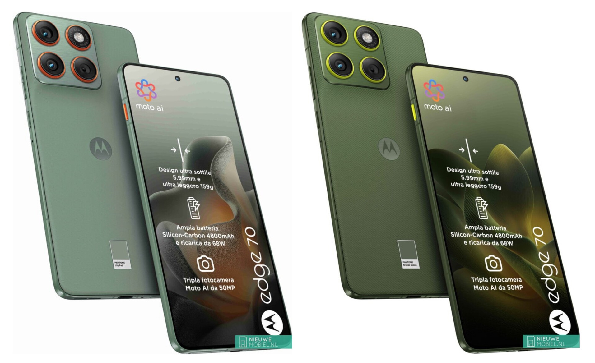 Ora, Nieuwe Mobiel ha ottenuto ulteriori dettagli sull'Edge 70 prima del tempo. Incorporate qui sotto, due delle immagini ribadiscono che Motorola prevede di offrire l'Edge 70 nelle stesse Pantone Bronze Green e Pantone Lily Pad opzioni di colore in cui è stato mostrato anche il Moto X70 Air è stato mostrato. Inoltre, queste stesse immagini evidenziano che l'Edge 70 dispone di una batteria da 4.800 mAh, nonostante sia solo leggermente più spesso dell'iPhone Air iPhone Air e Galaxy S25 Edge (attualmente 689 dollari - usato su Amazon).