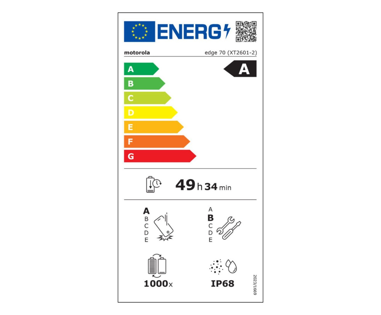 Inoltre, viene menzionata la certificazione IP68, l'eccellente protezione dalle cadute e l'efficienza energetica, ma solo una valutazione 'B' per la riparabilità. A quanto pare, l'Edge 70 garantirà quasi 50 ore di durata della batteria tra una carica e l'altra. In altre parole, l'UE ritiene che l'Edge 70 possa durare fino al 25% in più con una singola carica rispetto all'S25 Edge Galaxy Edge S25 o di .iPhone Air.
