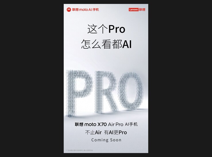 Motorola ha ora pubblicato un'immagine teaser sul social network cinese Weibo che indica che il Moto X70 Air Pro sarà presentato ufficialmente a breve. Non sappiamo se questo smartphone avrà lo stesso design del modello Motorola Signature, anch'esso destinato a debuttare a gennaio. Il teaser promette solo che lo smartphone è "più Pro" e offre più funzioni AI. Questo suggerisce che il portatile sarà equipaggiato con un processore più potente del Qualcomm Snapdragon 7 Gen 4 che si trova all'interno del Motorola Edge 70.
