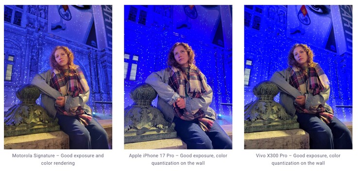 Con un punteggio abbastanza rispettabile di 164, il Motorola Signature si posiziona al sesto posto nella classifica generale di DxOMark - un posto avanti al Google Pixel 10 Pro XL e appena sotto l'iPhone 17 Pro di Apple. Il dispositivo ha mostrato solo piccole debolezze durante l'analisi di DxOMark, come l'esposizione incoerente nell'acquisizione video, il rumore dell'immagine nelle scene con una forte illuminazione sullo sfondo e una certa perdita di dettagli con lo zoom 2x, dovuta alla dipendenza dall'ingrandimento digitale.