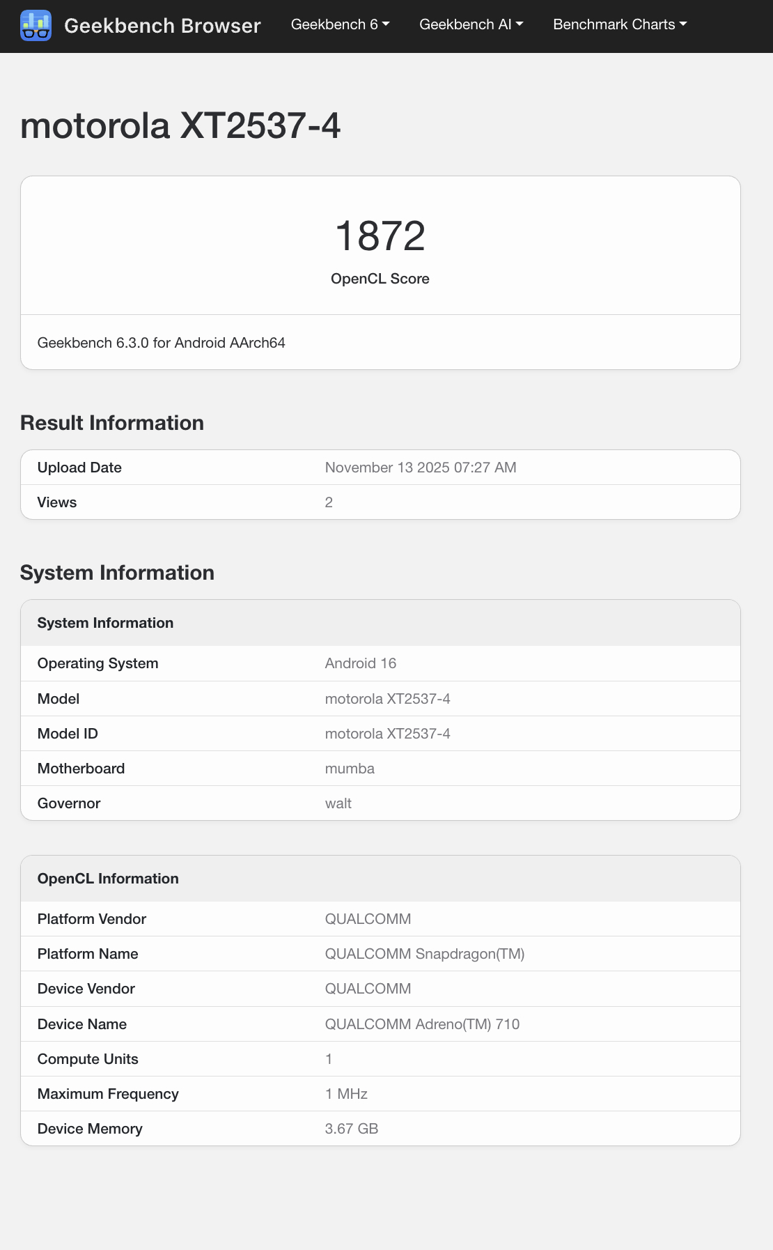 Tuttavia, un altro nuovo modello è emerso su Geekbench prima del suo lancio ufficiale. Attualmente, la piattaforma di benchmarking restituisce solo il nome 'Motorola XT2537-4', con XT2534-4 che è una variante del modello principale 'XT2537'. Detto questo, diverse fonti indicano che XT2537 si riferisce al Moto G76, un successore diretto di Moto G75 che è stato lanciato lo scorso ottobre con un chipset Snapdragon 6 Gen 3. Al contrario, sembra che il Moto G76 sia dotato di Snapdragon 6s Gen 4, un chipset che Qualcomm ha presentato meno di un mese fa ha presentato meno di un mese fa.