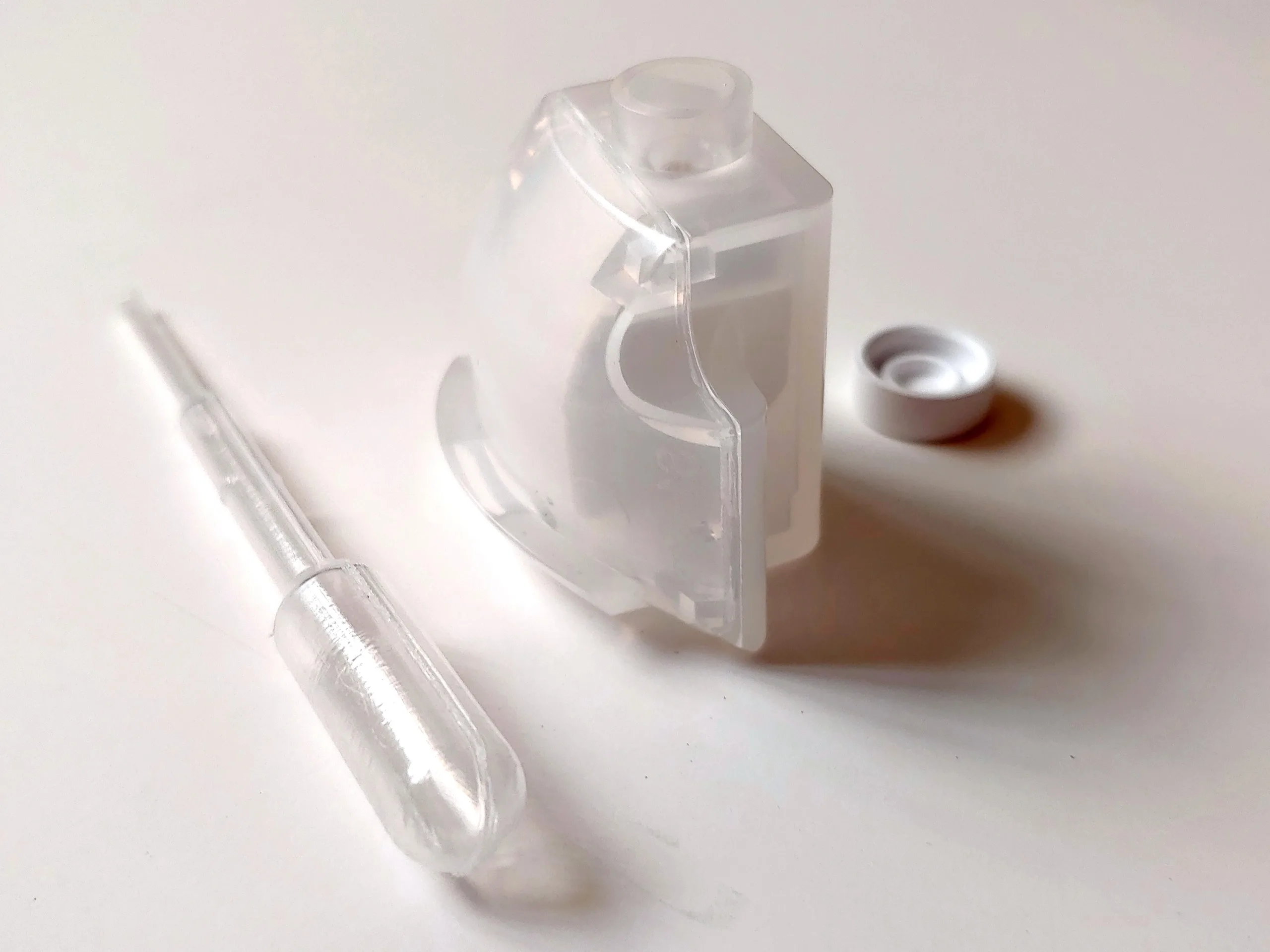 Il mouse Fragrance ha un serbatoio di profumo semi-trasparente sotto il coperchio della batteria. Un tappo di gomma bianca può essere rimosso per aggiungere oli essenziali utilizzando il contagocce incluso, infondendo un inserto duro e bianco. Il tappo non è impermeabile al 100%, per cui il mouse può perdere se viene tenuto inclinato.