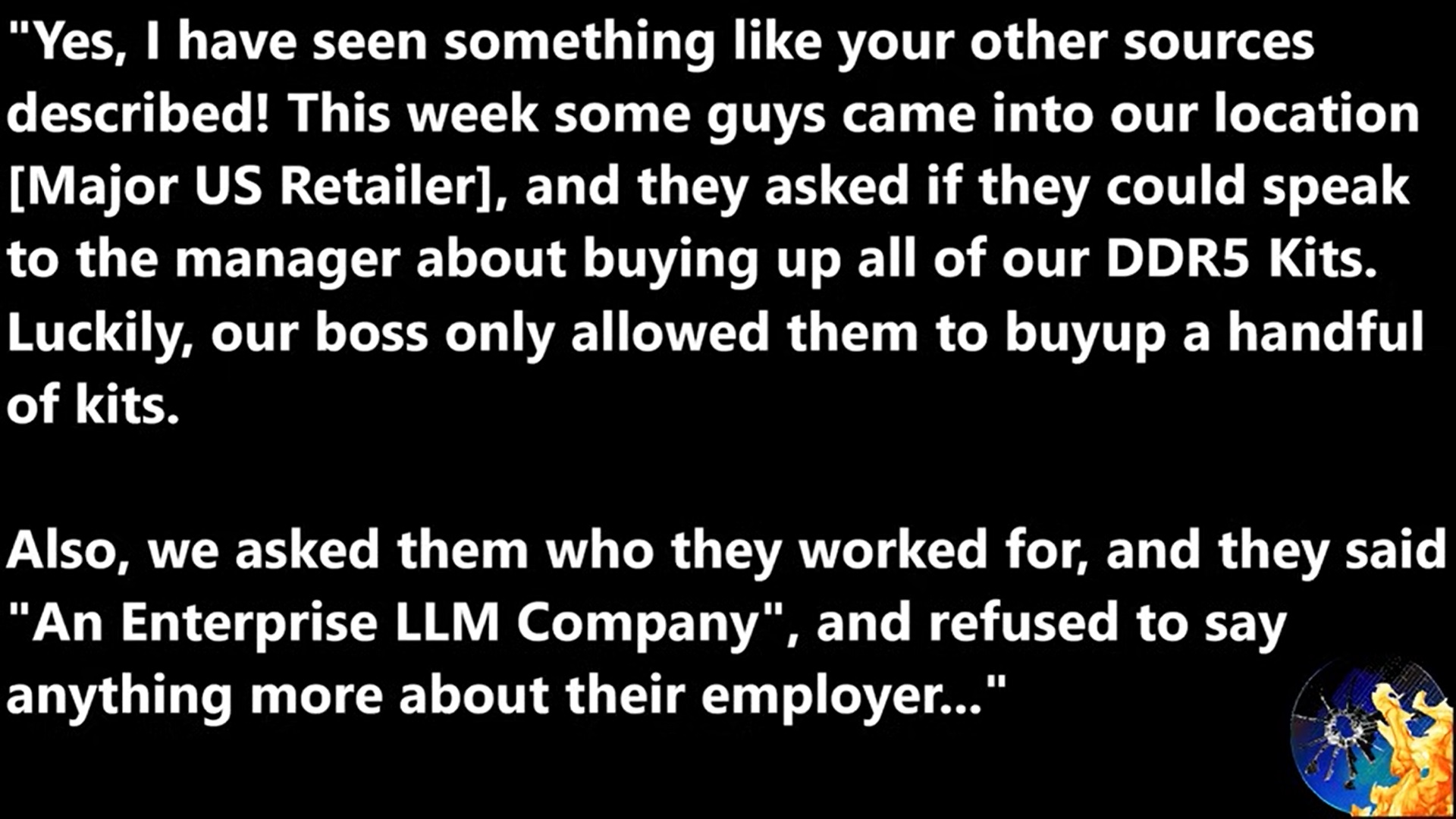 Secondo Moore's Law Is Deadnon solo OpenAI si sta accaparrando la maggior parte dell'offerta globale di memoria, ma l'azienda starebbe anche acquistando kit DDR5 per i consumatori. I dipendenti di OpenAI starebbero entrando nei negozi al dettaglio per cercare di mettere le mani su quanti più kit DDR5 possibile. Le informazioni sono giunte a MLID attraverso diverse fonti, tra cui rivenditori e fornitori di RAM.