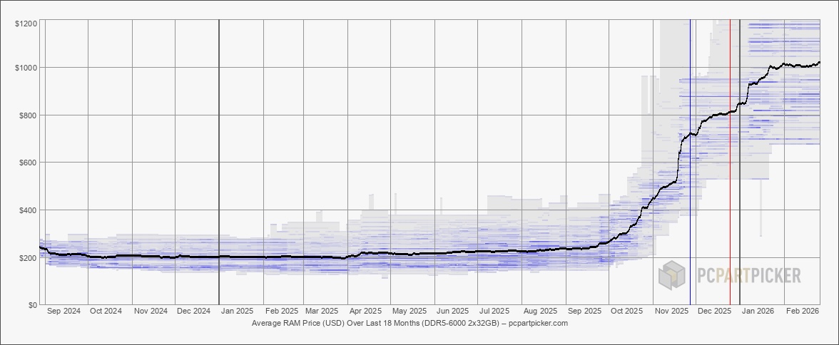 Con la probabilità che l'offerta rimanga scarsa, i prezzi continueranno ad essere fuori portata per molte persone. La RAM DDR5, ad esempio, ha subito un'impennata dei prezzi negli ultimi mesi, aumentando fino a cinque volte nell'ultimo anno circa. Tuttavia, c'è stato un leggero calo da gennaioil che sembra indicare che esiste un limite oltre il quale i consumatori si rifiutano di pagare.