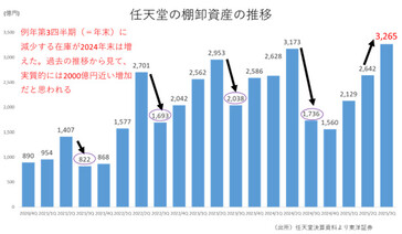 Per fare ciò, Nintendo dovrà assicurarsi di avere scorte sufficienti per soddisfare la domanda iniziale ed eventualmente continua di Switch 2. Come è noto, i problemi di scorte non sono sufficienti. Come è noto, i problemi di stock hanno afflitto il rilascio della PlayStation 5, e la Grande N non vorrà essere costretta a una situazione simile. Yasuda sostiene che le scorte di Nintendo sono molto solide al momento (vedere il secondo grafico qui sotto), e c'è un aumento molto chiaro dei numeri delle scorte negli ultimi trimestri. In effetti, l'analista ritiene che con un inventario sufficiente, le vendite di Nintendo Switch 2 potrebbero raggiungere i sei milioni di unità entro il primo trimestre di vita e forse anche superare questa cifra. In questo modo, la console ibrida potrebbe raggiungere le vendite di oltre 20 milioni di unità che sono state previste in precedenza previsto per il primo anno.