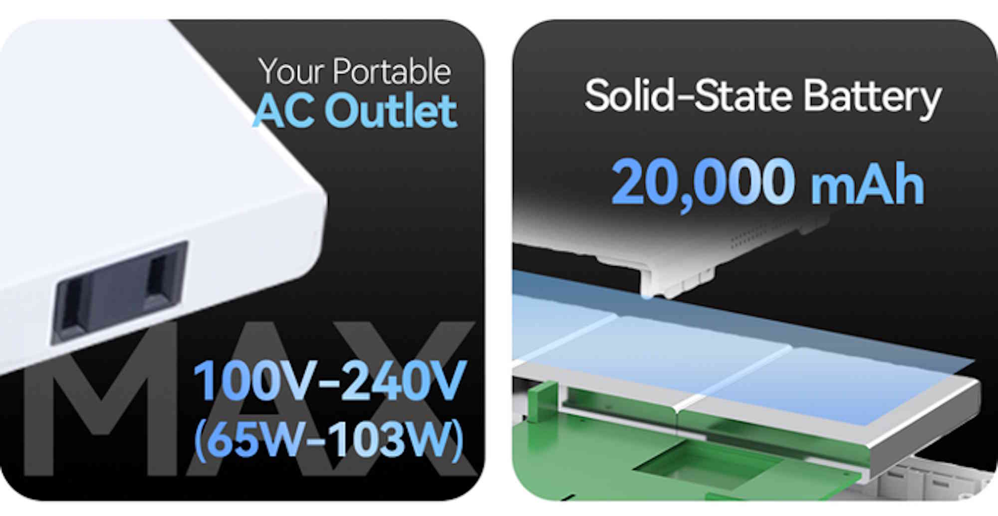 È supportata anche l'uscita di tensioni più elevate. In particolare, vengono promosse tensioni comprese tra 100 e 240 volt e una potenza continua di 65 watt e una potenza di picco di 103 watt. Si noti inoltre che il power bank è dotato di una presa CA NEMA 1, utilizzata negli Stati Uniti e in altre regioni del mondo. È possibile erogare fino a 60 watt tramite USB Tipo C, mentre il power bank stesso può essere caricato con un massimo di 65 watt. Infine, Nomad N1 è dotato di una ventola per il raffreddamento attivo.