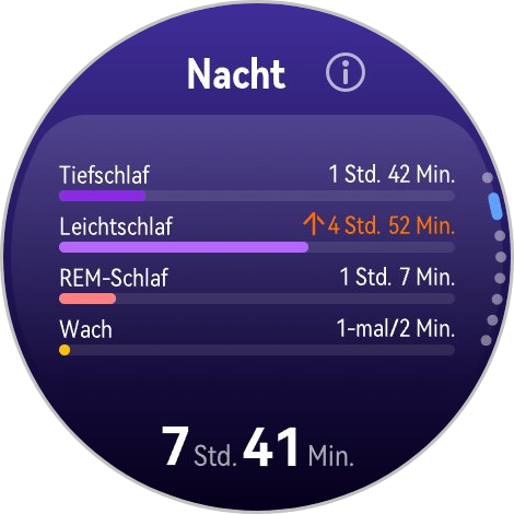 I risultati della scorsa notte possono essere visualizzati direttamente sull'orologio, mentre le analisi a lungo termine sono disponibili nell'app Huawei Health. Nel complesso, i risultati delle misurazioni sembrano affidabili. Sebbene il Watch GT Runner 2 non offra una sveglia intelligente, è possibile impostare orari di sveglia personalizzati.