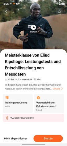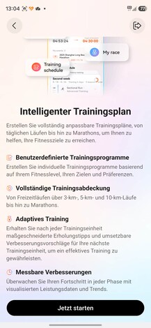 Per quanto riguarda il fitness, il Watch GT Runner 2, come suggerisce il nome, si concentra chiaramente sulla corsa. Oltre alle consuete modalità di corsa, è stata implementata una nuova modalità maratona e i piani di allenamento adatti possono essere trovati nell'app Salute. Questi non sono legati all'abbonamento Health+, ma rimangono gratuiti per i corridori.
