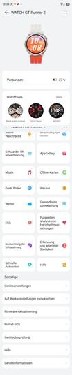 Prima di accoppiare lo smartwatch, è necessario installare l'applicazione Huawei Health. Viene utilizzata sia per gestire il dispositivo che per analizzare i dati sanitari registrati. A causa dell'embargo commerciale in corso negli Stati Uniti, l'applicazione non è disponibile nel Google Play Store. In alternativa, può essere scaricata utilizzando il codice QR stampato sulla confezione o tramite app store alternativi come AppGallery (Huawei), Galaxy Store (Samsung) o App Mall (Xiaomi). Per gli utenti di iPhone, Huawei Health è disponibile anche direttamente nell'App Store Apple. Dopo l'installazione, il Watch GT Runner 2 può essere cercato nell'app o, se necessario, accoppiato utilizzando il codice QR sul display dell'orologio.