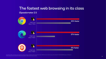 - Ora che il browser web Chrome è disponibile in versione ARM, le prestazioni di Speedometer possono finalmente essere confrontate in modo adeguato con quelle di un sistema Intel. In questo caso, la versione nativa di Chrome sul sistema di test di Qualcomm batte l'Intel Core Ultra 7 155H del 20%, mentre il browser Edge di Microsoft funziona addirittura il 57% più velocemente e l'alternativa Brave il 15% in più.
