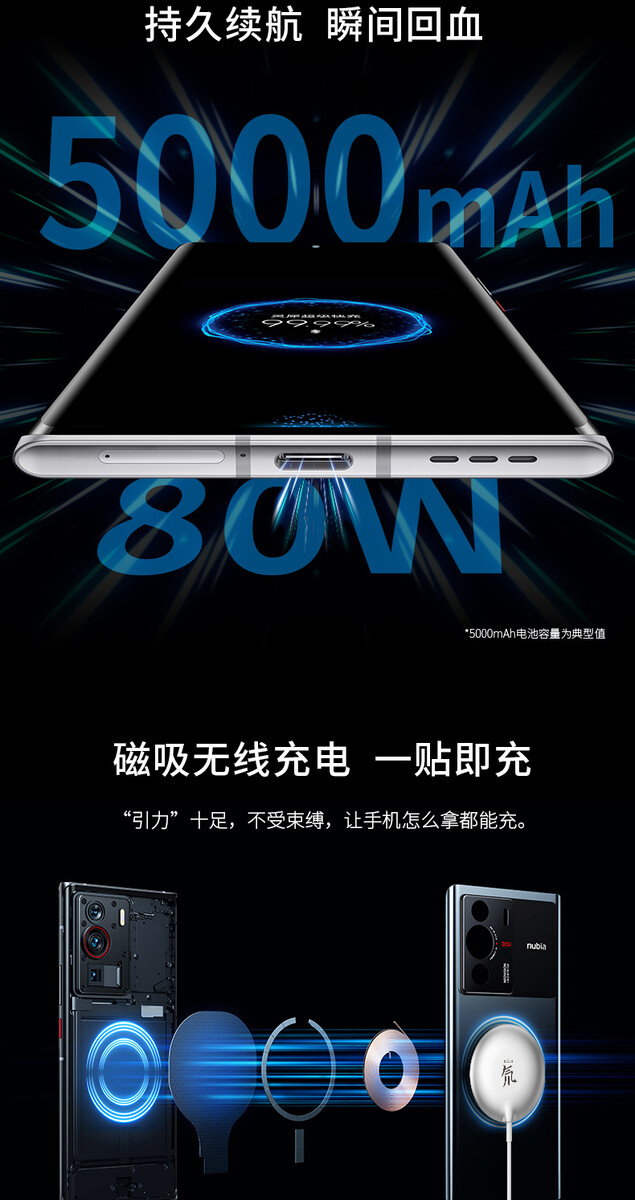 Inoltre, lo Z40 Pro Gravity Edition supporta la ricarica magnetica wireless, rispecchiando i recenti iPhone. Secondo Nubia, la Gravity Edition può ricaricare la sua batteria da 4.600 mAh fino a 66 W. Al contrario, lo Z40 Pro standard ha una batteria da 5.000 mAh che può ricaricare a 80 W tramite una connessione cablata.