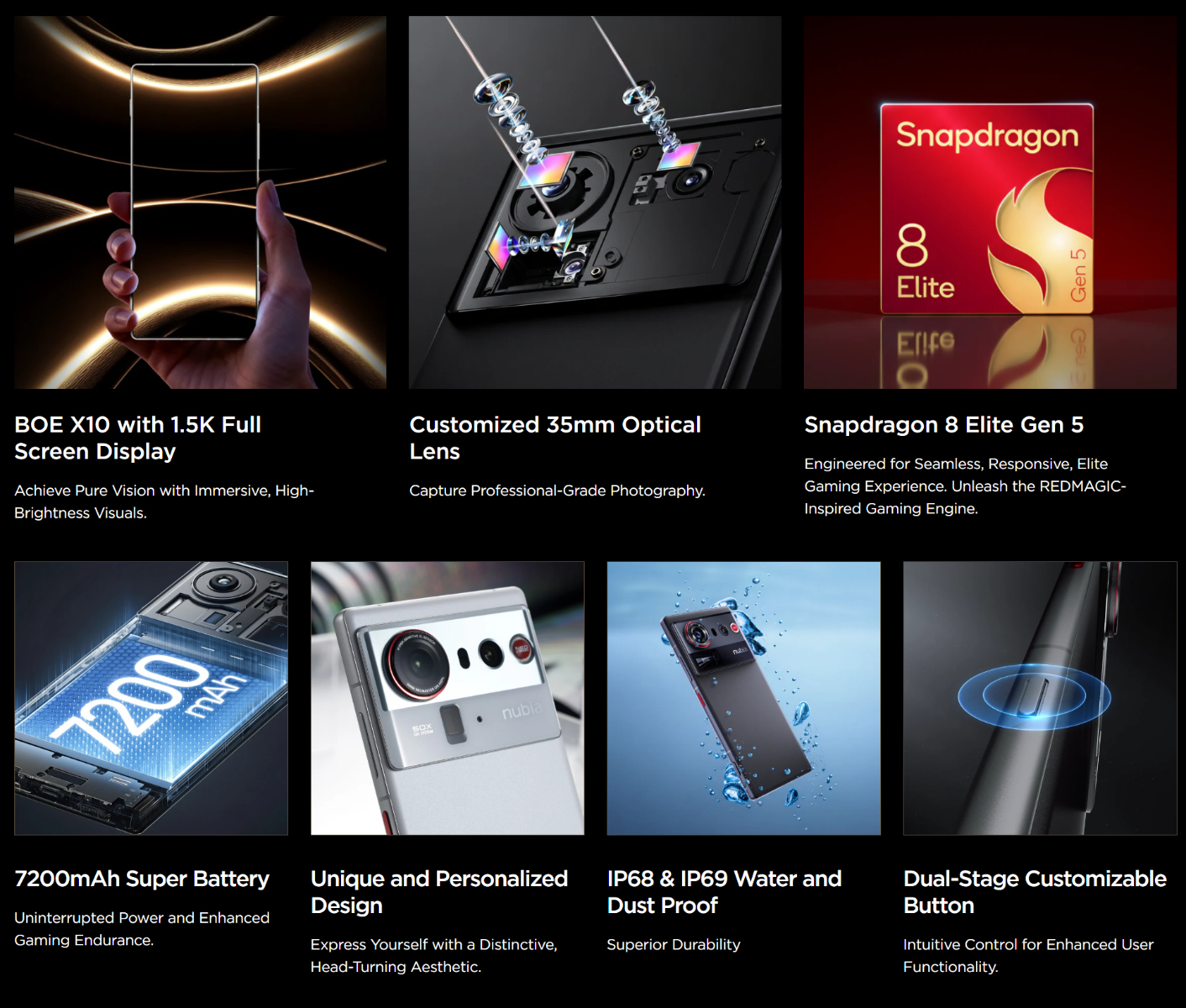 A quanto pare, il Nubia Z80 Ultra non sarà molto lontano dal suo cugino RedMagic. Per avere un'idea del contesto, il RedMagic 11 Pro arriverà a livello globale il 3 novembre. Nel frattempo, Nubia ha programmato il lancio dello Z80 Ultra al di fuori della Cina solo tre giorni dopo. L'azienda offre anche diverse offerte per il lancio, tra cui la possibilità di vincere un Nubia Z80 Ultra, un Retro Kit o un Game Pad 2.