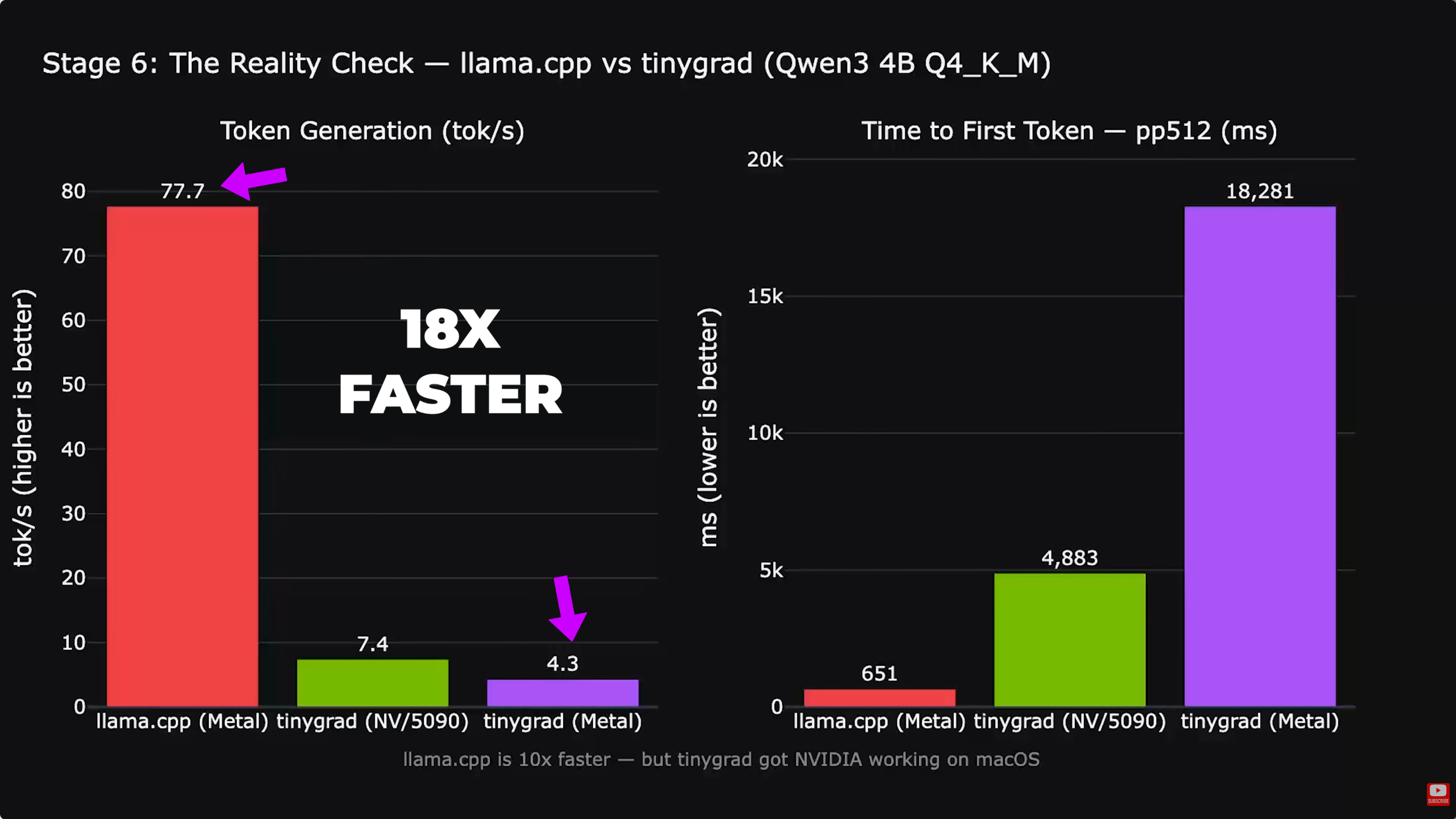 Mentre la connessione è stabile, l'attuale stack software è nelle sue fasi iniziali. Il driver si affida al compilatore Tiny Grad piuttosto che alle ottimizzazioni Metal o CUDA native. Questo crea un divario di prestazioni durante le attività di calcolo pesanti. Durante l'esecuzione del modello Llama 3.1 8Bla configurazione ha raggiunto circa 7,48 token al secondo. Anche se si tratta di una grande vittoria per la compatibilità, è ancora più lento del CPP nativo di Llama su Metal, dice Alex, che è quasi dieci volte più veloce su un hardware equivalente.