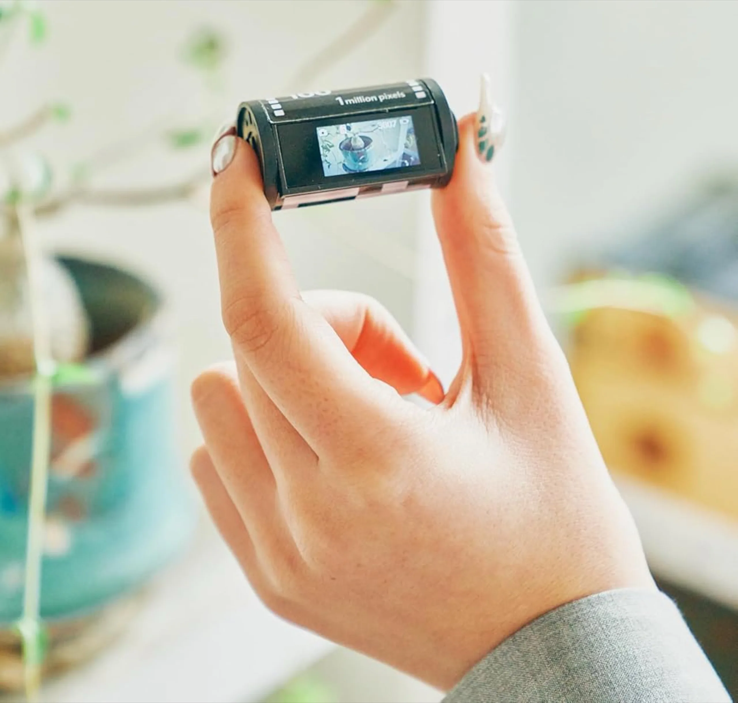 NeoFilm è disponibile in tre colori diversi e tutti sono ispirati a film popolari. Sul retro c'è un piccolo display da 160 x 80 pixel per inquadrare le foto, che mostra anche lo stato della batteria e la scheda microSD, che può essere inserita sul fondo. Nel frattempo, la parte anteriore ospita un obiettivo minuscolo e appena visibile con un sensore CMOS da 8MP e 1/4 di pollice.