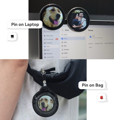 Inoltre, gli schermi LCD consumano una quantità di energia relativamente elevata. Mentre un display MiP senza retroilluminazione dovrebbe consentire una durata della batteria di diversi giorni o settimane, un LCD dovrebbe durare solo poche ore; il produttore non specifica quanto durerà la batteria da 400 mAh. La ricarica avviene tramite USB-C. Con 2 GB di memoria interna e una scheda microSD opzionale (fino a 32 GB), è possibile memorizzare centinaia di video clip direttamente sul pin. Il pin può essere attaccato agli indumenti con una spilla di sicurezza o magneticamente.