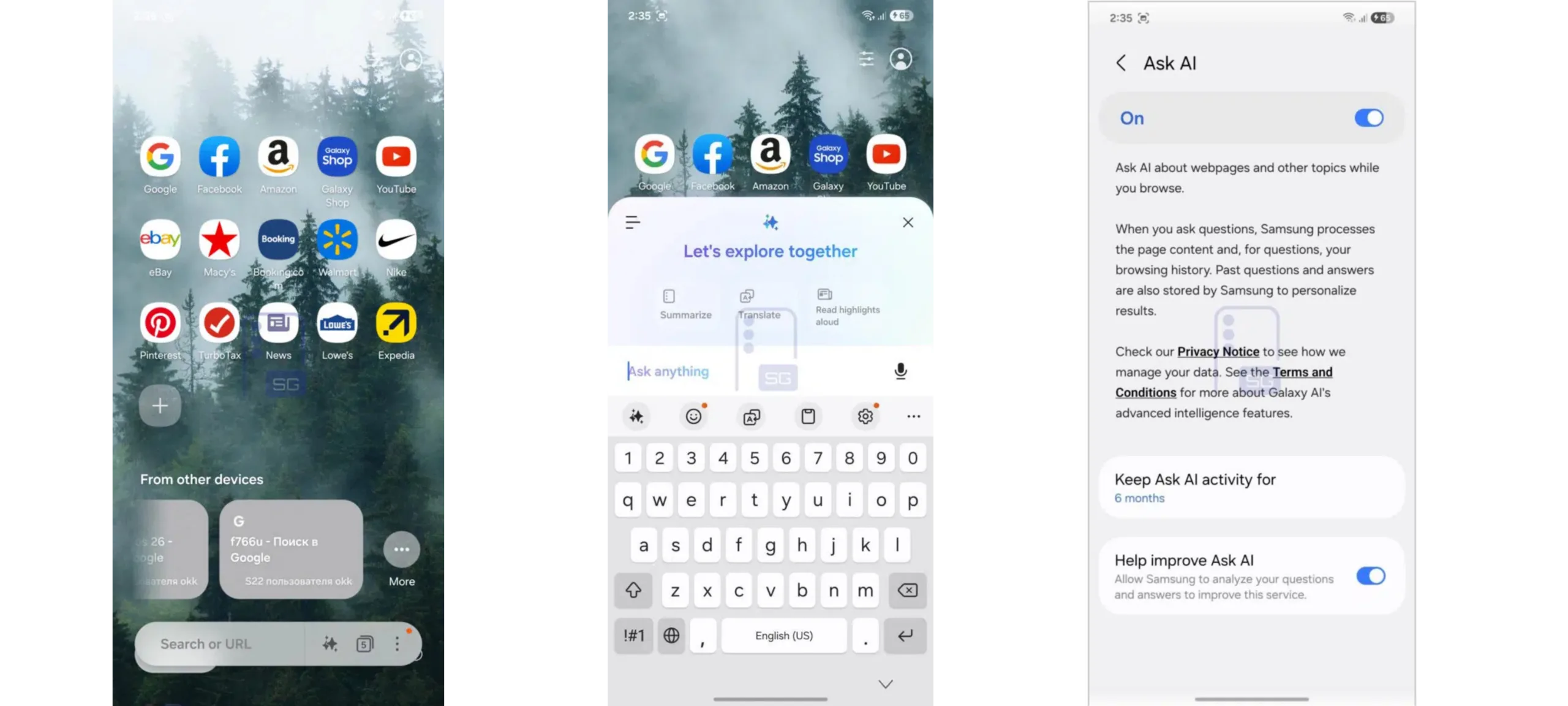 Secondo un rapporto di SammyGurusono trapelate delle build di One UI 9 indicano nuove aggiunte a Samsung Internet. Si dice che il browser abbia una nuova barra di ricerca compatta in un layout fluttuante posizionato vicino alla parte inferiore dello schermo. Include opzioni come la ricerca, l'accesso AI, le schede recenti e un menu.