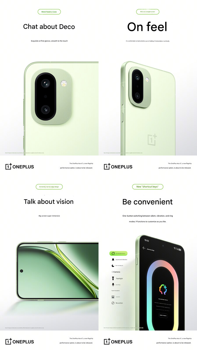 Inoltre, le foto hanno confermato che il OnePlus Ace 6T sarà dotato di una configurazione a doppia fotocamera sul retro, con un'isola di fotocamere dall'aspetto simile a quella di OnePlus 15. Anche se il marchio non l'ha ancora confermato, si prevede che queste due ci si aspetta che siano sensori da 50 MP. L'azienda ha comunque confermato che il telefono avrà un display dritto e una struttura leggera.