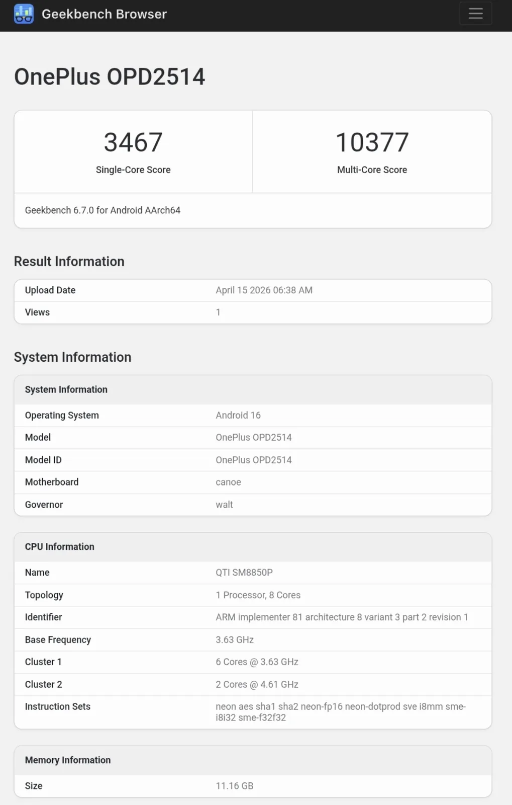 Tuttavia, quello che sembra essere il nuovo tablet di OnePlus è apparso su Geekbench. Incorporato qui sotto, un punteggio single-core di 3.467 è nella fascia bassa di quello che ci aspettiamo dallo Snapdragon 8 Elite Gen 5 chipset. In effetti, questo primo punteggio vede il vociferato Pad 3 Pro in testa alla classifica del più piccolo OnePlus 15. Allo stesso modo, il punteggio multi-core del tablet, pari a 10.395, lo posizionerebbe al secondo posto nella nostra classifica multi-core di Geekbench 6.