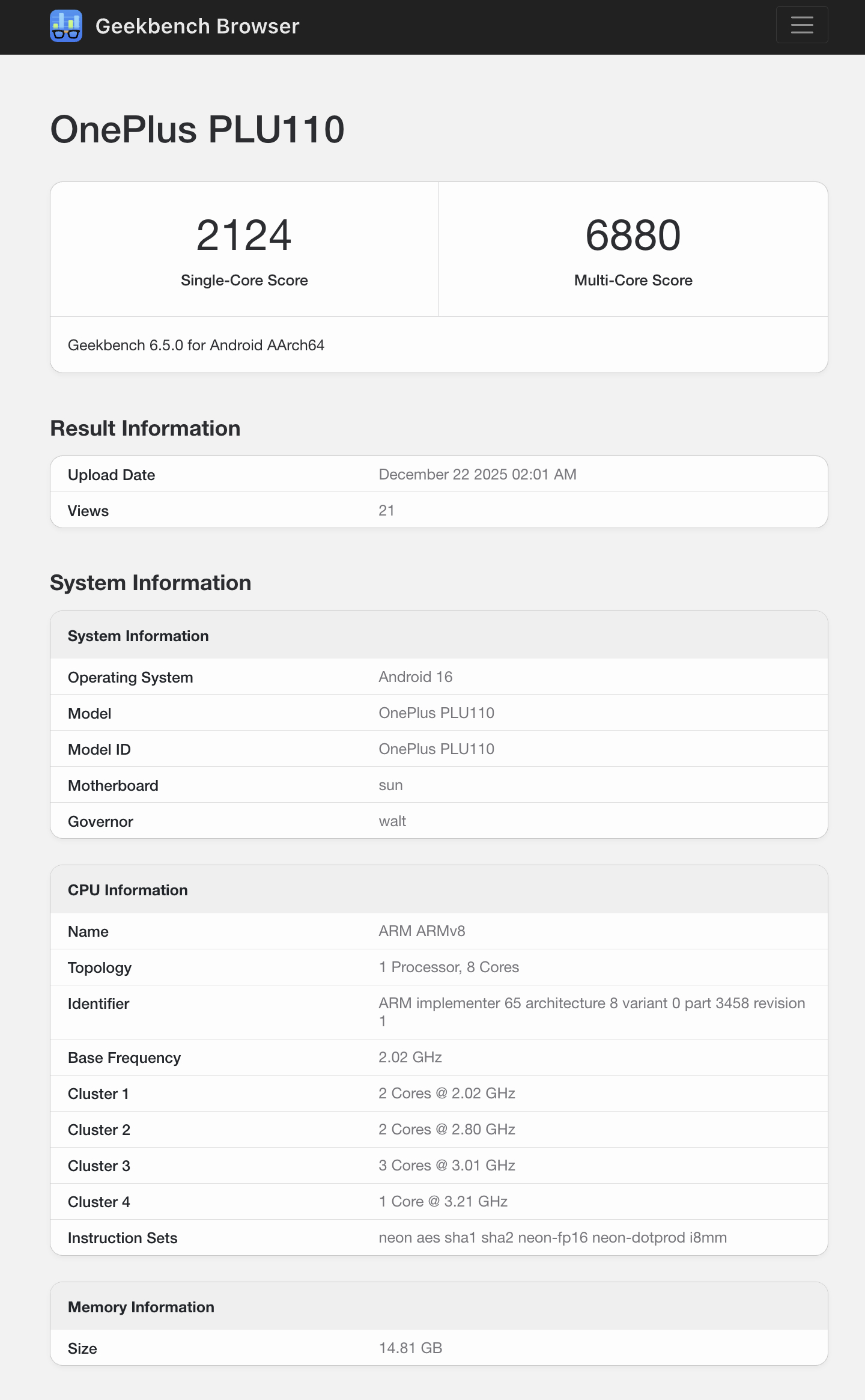 OnePlus ha ufficialmente ha confermato l'esistenza della sua nuova serie di smartphone Turbo la scorsa settimana. Mentre l'azienda ha tenuto le sue carte vicino al suo petto da allora, nuove voci di Geekbench sembrano aver rivelato diversi dettagli in anticipo. Come mostrano gli screenshot qui sotto, uno smartphone OnePlus inedito con il numero di modello PLU110 è emerso sulla famosa piattaforma di benchmarking.