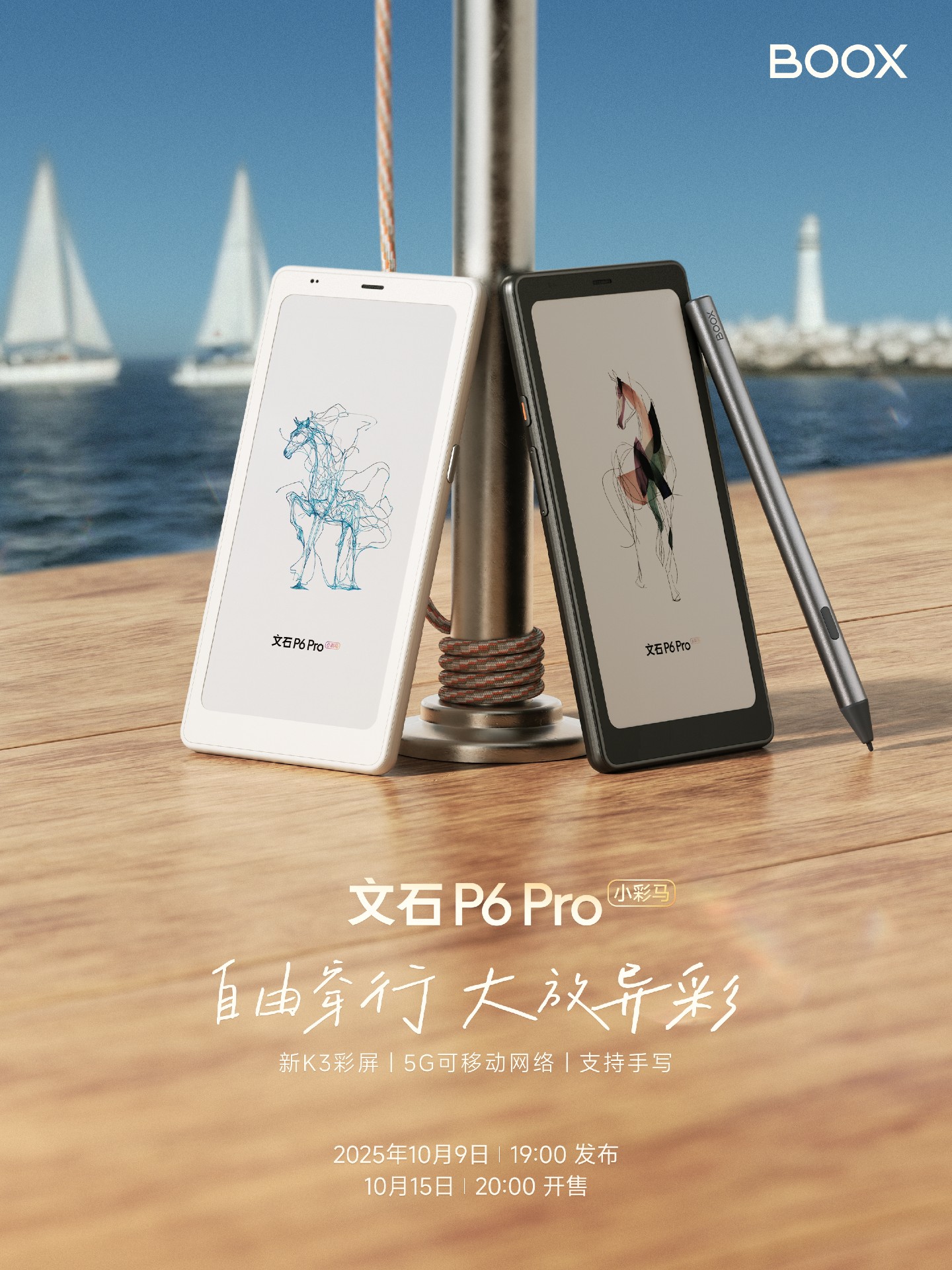 L'annuncio di Boox P6 Pro e Boox P6 Pro Color è previsto per il 9 ottobre in Cina. Non ci sono ancora informazioni su un rilascio globale.