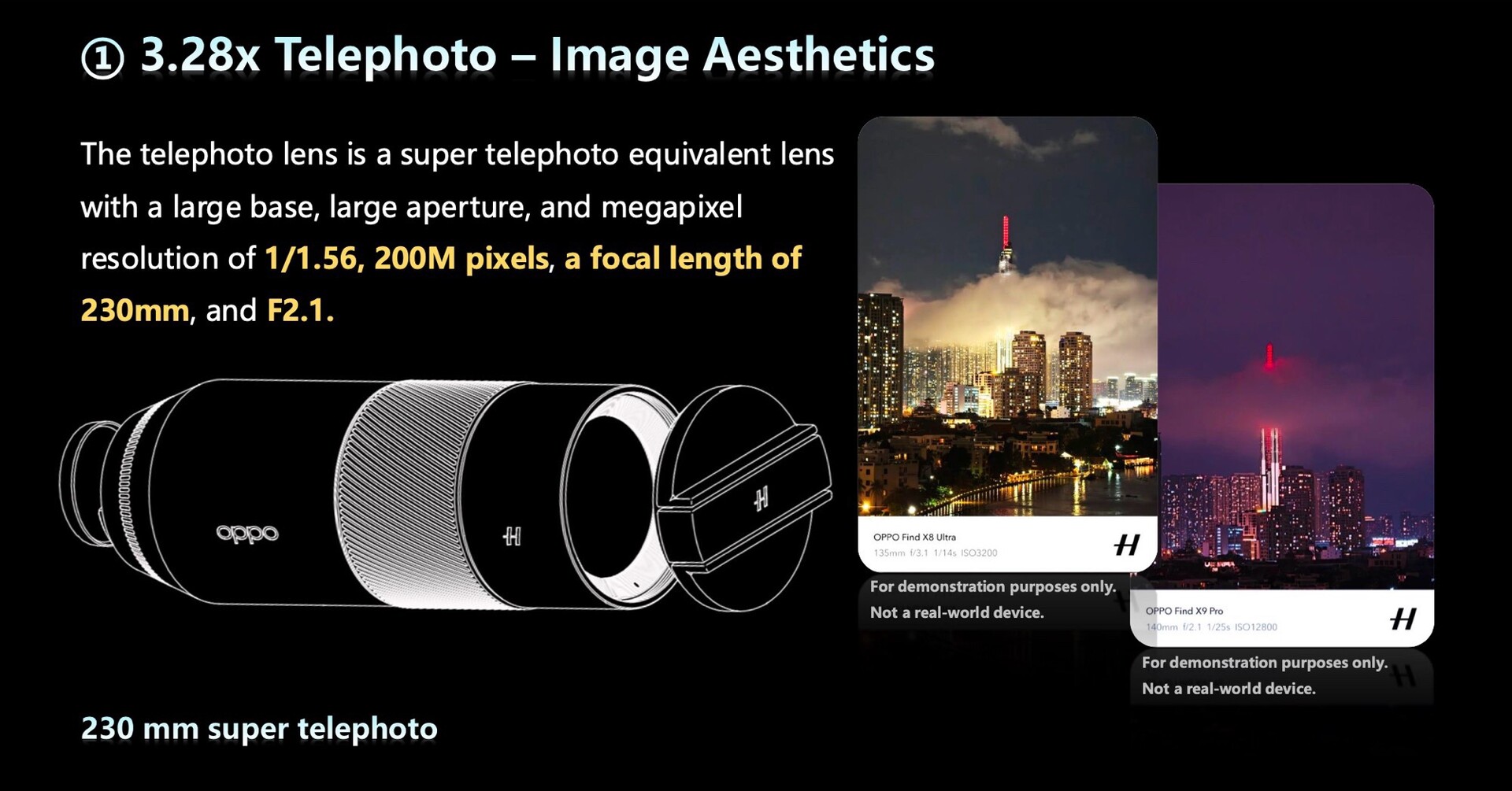 Dal punto di vista matematico, la lunghezza focale effettiva di 14,4 mm non viene più divisa per 2,1 per arrivare al diametro dell'apertura. Invece, la lunghezza focale aumenta a 47,3 mm, ma il diametro del diaframma rimane di 6,85 mm, quindi la lunghezza focale deve essere divisa per 6,9, il che significa che il diaframma è f/6,9. Le cifre sono state estrapolate dai dati tecnici di Oppos e possono variare leggermente, ma questo non cambia la premessa.