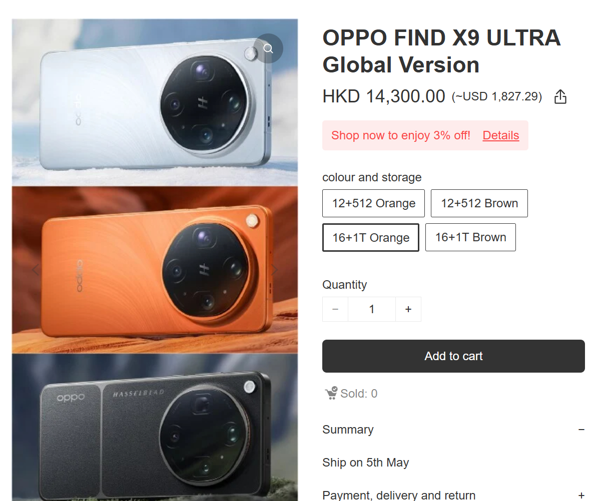 Oppo Find X9 Ultra: modelli globali già disponibili per l'acquisto con un massimo di 16 GB di RAM