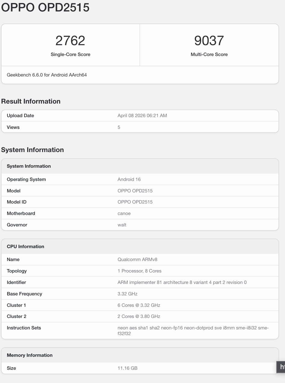 L'elenco di Geekbench rivela anche che il tablet esegue Android 16. Secondo una recente leakoppo Pad Mini sarà dotato di un pannello OLED da 8,8 pollici con un rapporto d'aspetto 3:2. Potrebbe anche essere dotato di una batteria da 8.000 mAh con ricarica rapida da 67W. Oltre al Pad Mini, l'azienda dovrebbe presentare il Pad 5 Pro, un tablet di punta con chipset Snapdragon 8 Elite Gen 5.