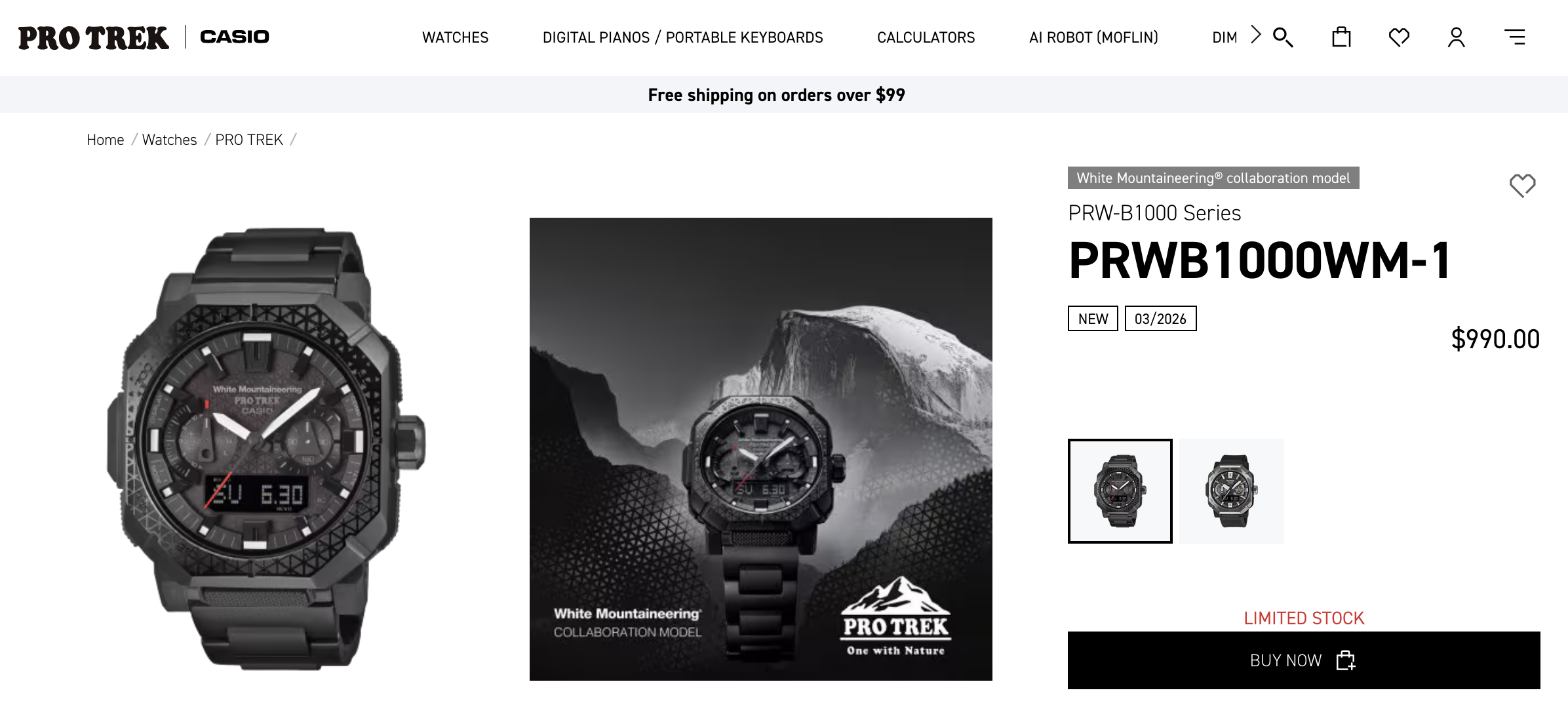 Casio's recentemente annunciato La collaborazione Pro Trek di Casio con White Mountaineering è ora disponibile per l'acquisto negli Stati Uniti, con inserzioni che mostrano scorte limitate per il modello PRW-B1000WM-1. Il modello è stato presentato all'inizio di quest'anno e le pagine di vendita al dettaglio di confermano ora il prezzo di 990 dollari.