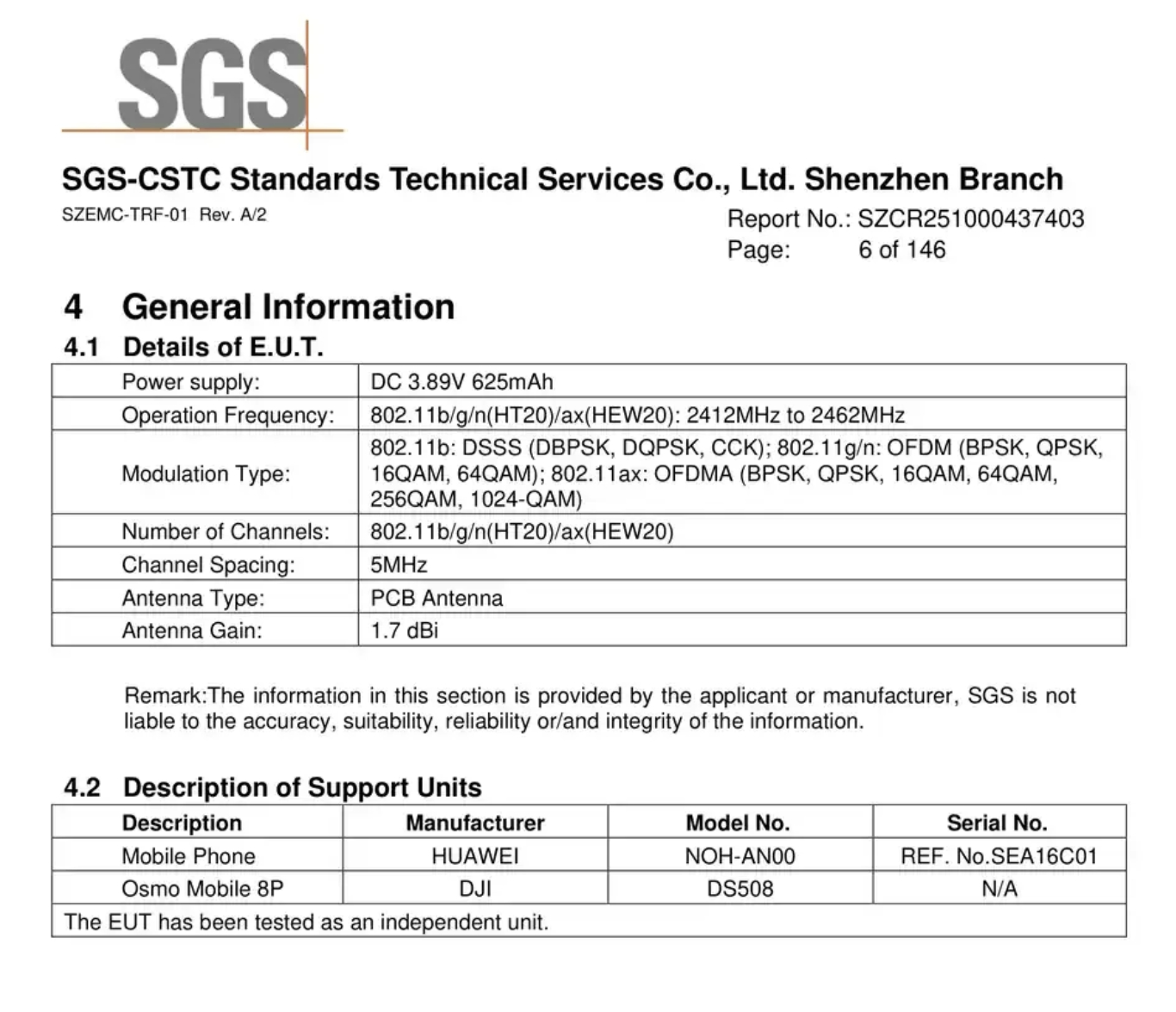 Inoltre, l'ente normativo riferisce che Osmo FrameTap ha una modesta batteria da 625 mAh. Con una batteria appena più grande di molti smartwatch, sembra che l'Osmo FrameTap sia sul lato piccolo. Inoltre, il solo nome suggerisce che Osmo FrameTap può ottimizzare l'inquadratura delle immagini senza dover toccare Osmo Pocket 4 o Osmo Pocket 4 Pro. Sia che questo accessorio si affianchi a Osmo Pocket 4 o Osmo Pocket 4 Pro resta da vedere a questo punto.