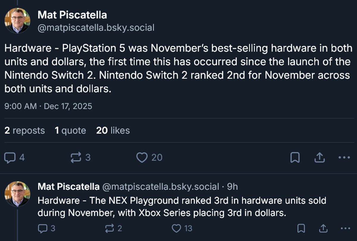 Lo Switch 2 è stato un successo per Nintendo, battendo le aspettative di performance al dettaglio. Tuttavia, i sistemi di gioco di Sony si stanno dimostrando resistenti, dopo che le vendite di PS5 hanno superato le classifiche di Circana di Circana nel mese di novembre. I dati statunitensi mostrano che la console PlayStation si è piazzata in prima posizione per la prima volta dalla data di uscita della sua rivale portatile.