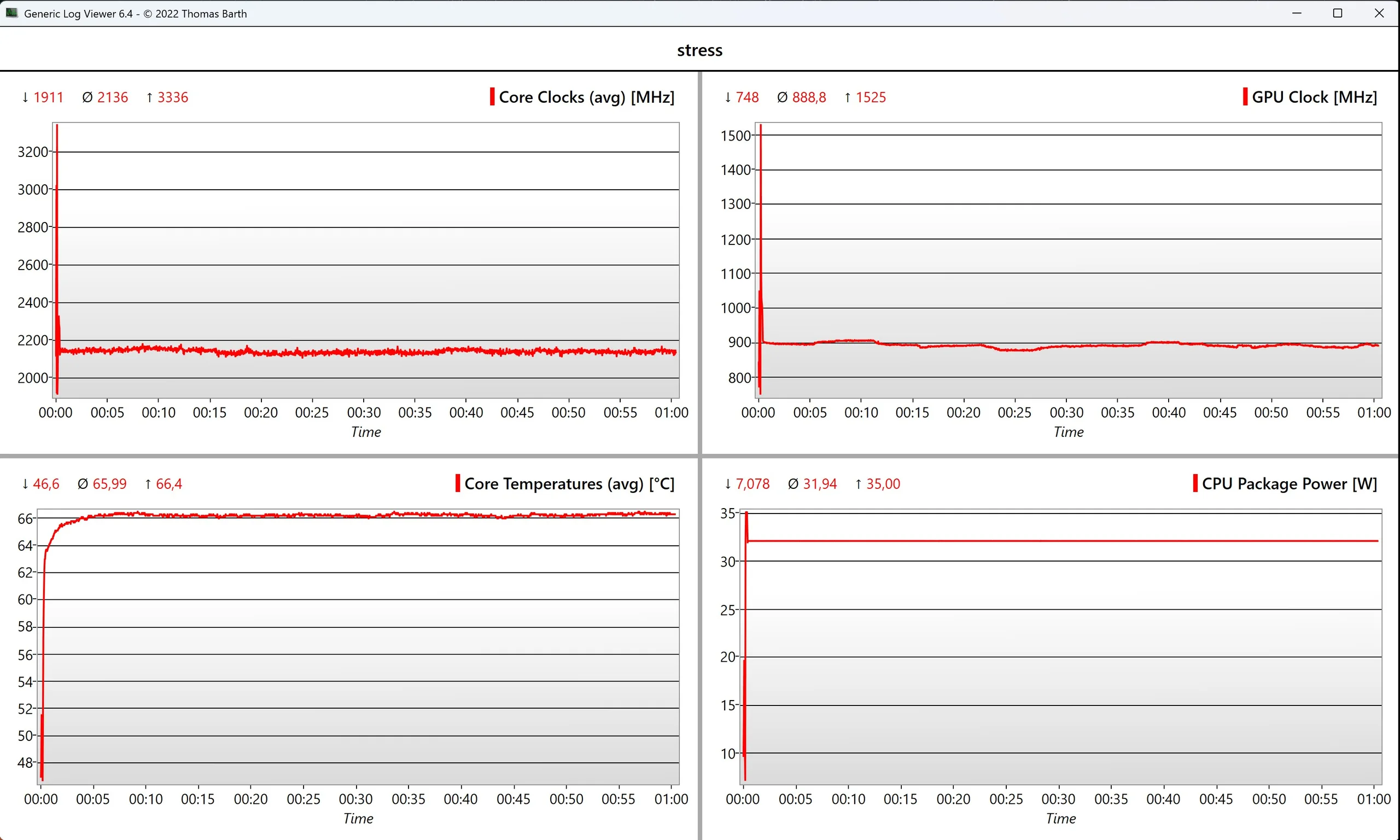Durante i giochi, i tempi di esecuzione dipendono in gran parte dal profilo energetico selezionato. In modalità Performance (dove il TDP è limitato rapidamente a 20 watt), la durata della batteria è di circa 2,5 ore. Utilizzando la massima potenza in modalità Manuale, l'autonomia si riduce a poco più di un'ora (1:17 ore). In modalità Silenziosa, il dispositivo dura poco più di cinque ore, mentre la modalità Bilanciata offre poco meno di tre ore.