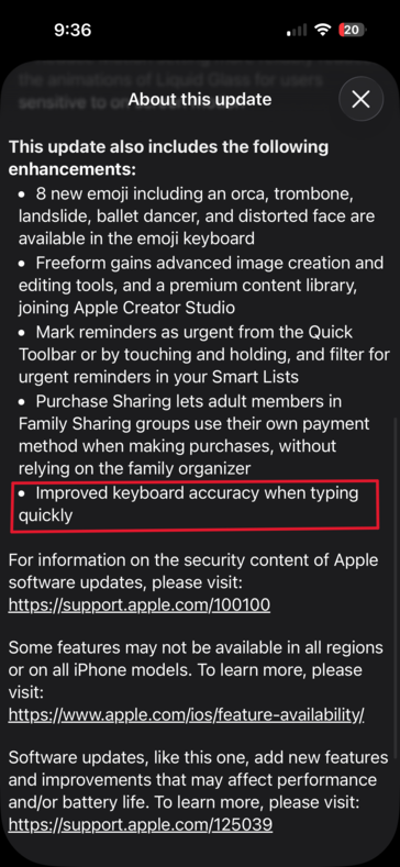 Un utente del supporto di Apple ha riferito nel novembre 2025 che la precisione della digitazione sullo schermo era "diminuita drasticamente" dopo l'aggiornamento. All'inizio del 2026, le lamentele erano piuttosto comuni online. MacRumors ha descritto "molteplici lamentele" sul fatto che iOS 26 aveva reso le tastiere "molto più inclini agli errori". In un thread su Reddit, un utente si è lamentato del fatto che la sua tastiera era "laggosa, mancava di input [e] correggeva automaticamente in modo assurdo", rendendo il telefono quasi "inutilizzabile" per lui. Alcuni utenti hanno ricondotto il problema a iOS: non si trattava di un problema hardware o di un'applicazione specifica, e non si verificava con una digitazione più lenta. In breve, chiunque digitasse abbastanza velocemente si imbatteva in questo problema. E a quel punto, non si trattava più di un caso limite, ma di un problema diffuso.