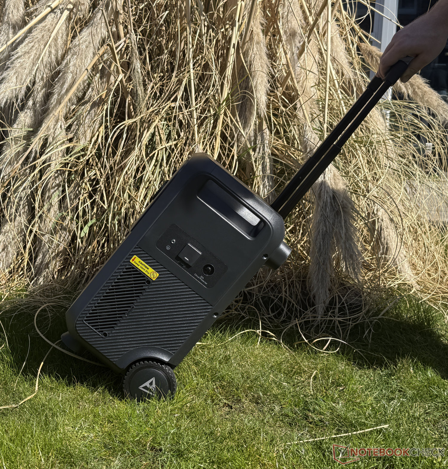 Con il suo peso di circa 39 kg, non passerebbe come bagaglio a mano su nessuna compagnia aerea, ma è comunque significativamente più compatto e leggero di molti concorrenti con una capacità paragonabile. Ad esempio, il EcoFlow Delta Pro 3 (circa 2.100 dollari presso EcoFlow) pesa ben 10 kg in più. L'Elite 400 è ancora più leggero dell' Anker Solix F3000 (circa 1.400 dollari presso Anker Solix), che ha una capacità inferiore di poco meno di 1 kWh. Come di consueto in questa classe, ci sono due ruote sul lato inferiore per il trasporto, nonché una maniglia telescopica e due robuste maniglie sul lato superiore.